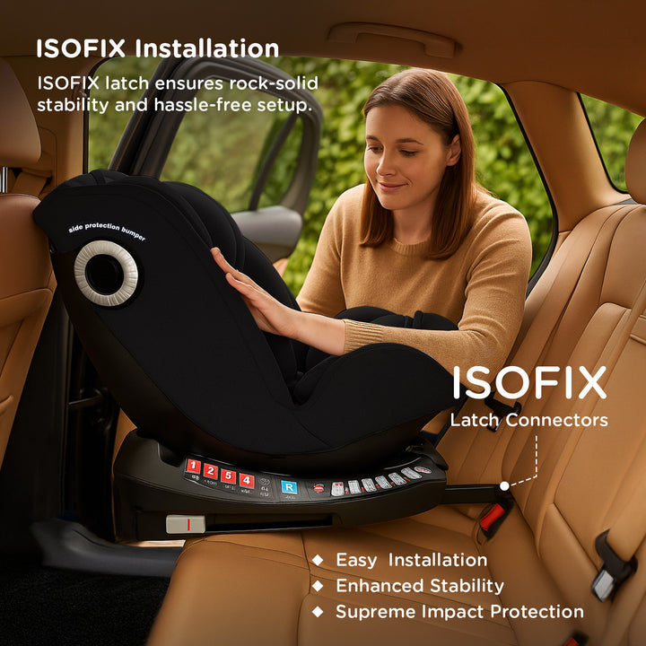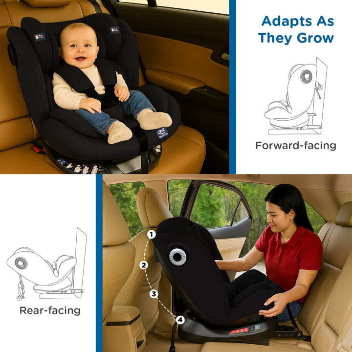 The all-in-one car seat made to grow with your child from infancy through early adolescence. Designed for convenience, safety, and comfort, this convertible ISOFIX car seat rotates a full 360°, making it easy to load and unload your child without uninstalling or twisting the seat. With multiple install modes (rear-facing, forward-facing, booster) and advanced safety features, this seat offers a long life of use—so you only need one seat for many years.