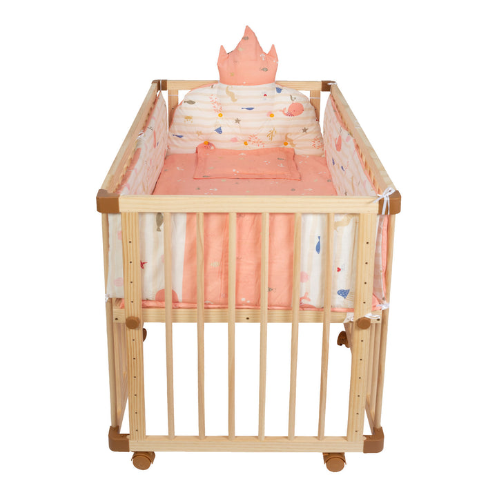 Introducing Dreamy Love Spacious Wooden Baby Cot, a haven of tranquillity and assurance for your little one. Crafted with care from premium pine wood, this crib not only exudes elegance but also promises durability for years to come. Designed to prioritize your baby's comfort, the crib comes with a soft mattress, creating a cozy sleeping environment that promotes peaceful slumbers. Safety locking wheels ensure mobility with stability, allowing you to move the crib effortlessly while keeping your baby secure. Adaptability is key, and this crib grows alongside your baby with adjustable height settings, catering to their needs from infancy through toddlerhood. Assembly is a breeze, thanks to its effortless setup, allowing you to spend more quality time with your little one. What sets this crib apart is its unique design, which allows attachment to the parent's bed for close monitoring during those precious early years. From serene nights to playful mornings, Dreamy Love Spacious Wooden Baby Cot offers a sanctuary where safety, convenience, and serenity converge, ensuring that your child's journey into the world is met with comfort and love.