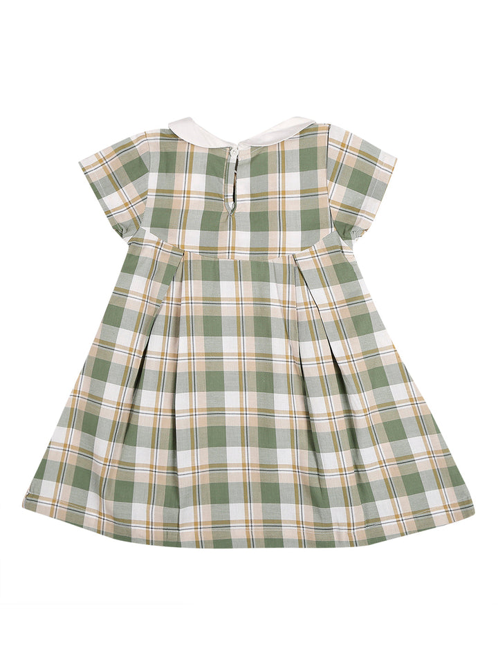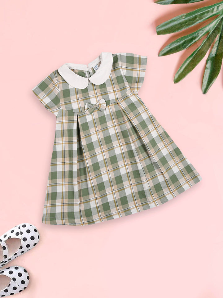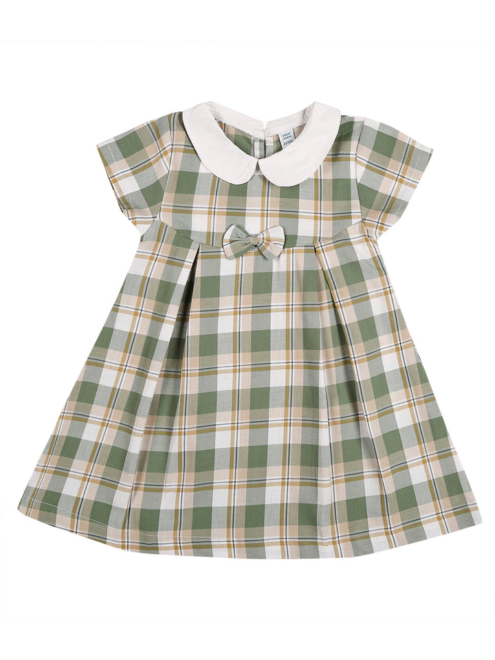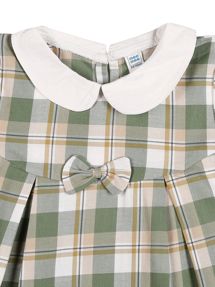 Green and White Bow Detail Plaid Dress with Peter Pan Collar