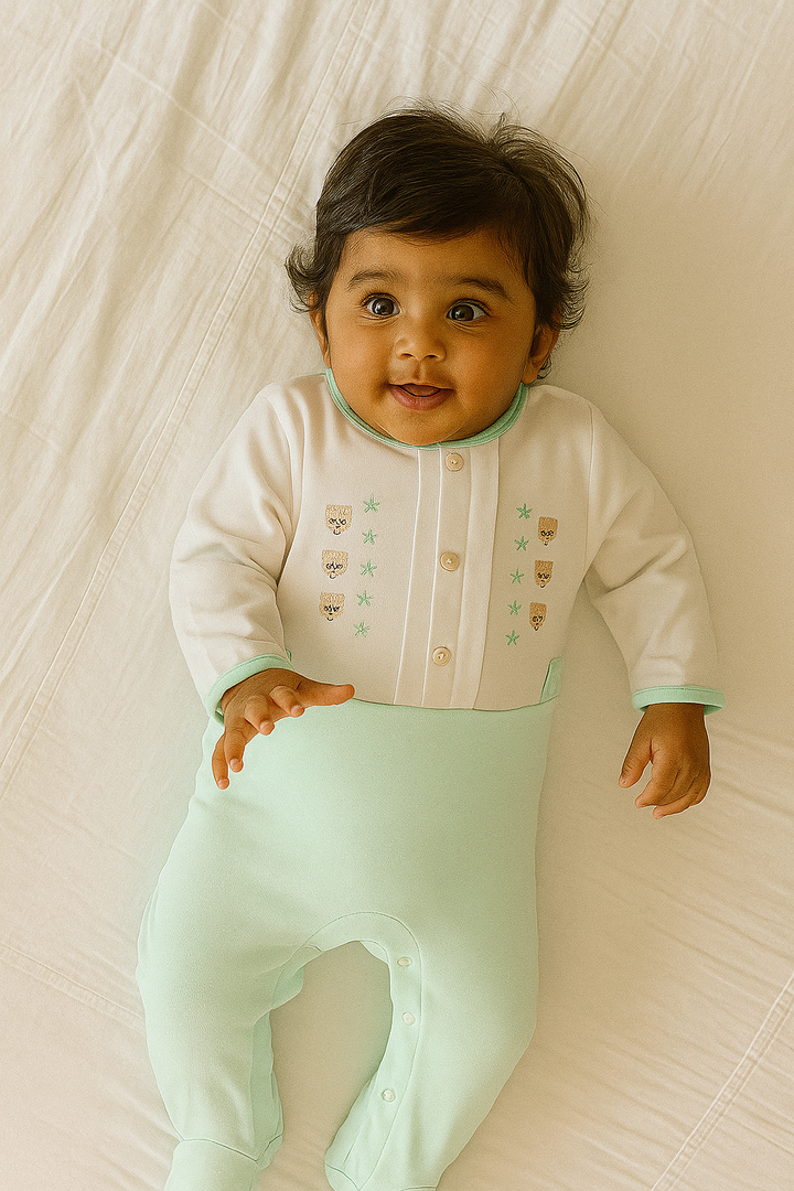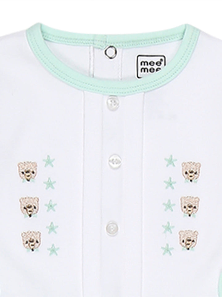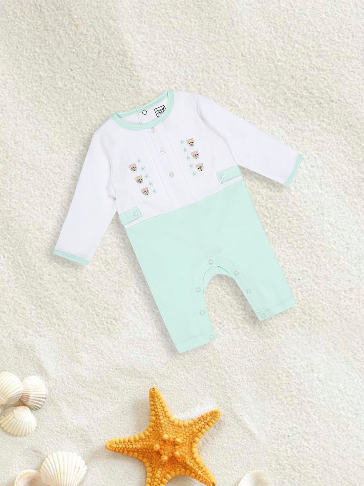 Long-Sleeved Baby Outfit with Bear and Star Appliqués