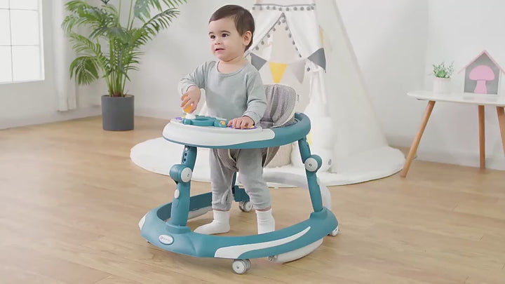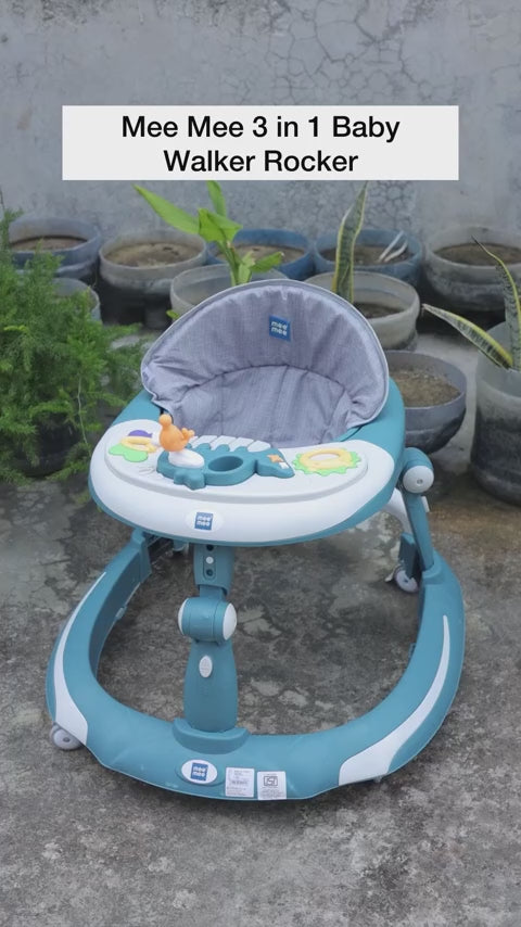 Introducing Mee Mee's diverse range of walkers designed to accompany your baby's developmental milestones. From traditional walkers to versatile walkers cum rockers and innovative walkers cum rockers cum push walkers, our collection offers something for every baby's needs. Experience the joy of watching your little one take their first steps with our baby walkers, meticulously crafted for safety and comfort. With adjustable height settings and a cushioned seat, these walkers are perfect for babies aged 6 to 18 months, whether it's your boy or girl. Enhance your baby's playtime with our musical walkers, featuring interactive toy panels and cheerful tunes to engage and entertain. The colorful designs stimulate your baby's senses while encouraging movement and exploration. For added versatility, opt for our walkers cum rockers, seamlessly transitioning between modes to suit your baby's preferences. The gentle rocking motion soothes and comforts, while the sturdy wheels ensure stability during play. Looking for a walker that doubles as a push walker? Our walkers cum rockers cum push walkers offer the best of both worlds. With a convenient push handle and automatic folding mechanism, these walkers transform into push walkers or trolleys for your growing children. Choose from a variety of designs, including our adorable panda-themed walker or vibrant color options to match your baby's personality. The foldable design makes storage and transportation a breeze, perfect for families on the go. Safety is our top priority, which is why all our walkers feature robust construction and secure seats to keep your baby protected. Let your little one explore confidently with Mee Mee's trusted range of walkers. Experience the joy of watching your baby learn and grow with Mee Mee's range of walkers. Designed to support your baby's developmental journey from 0-2 years old, our walkers are the perfect companion for every stage of early childhood.