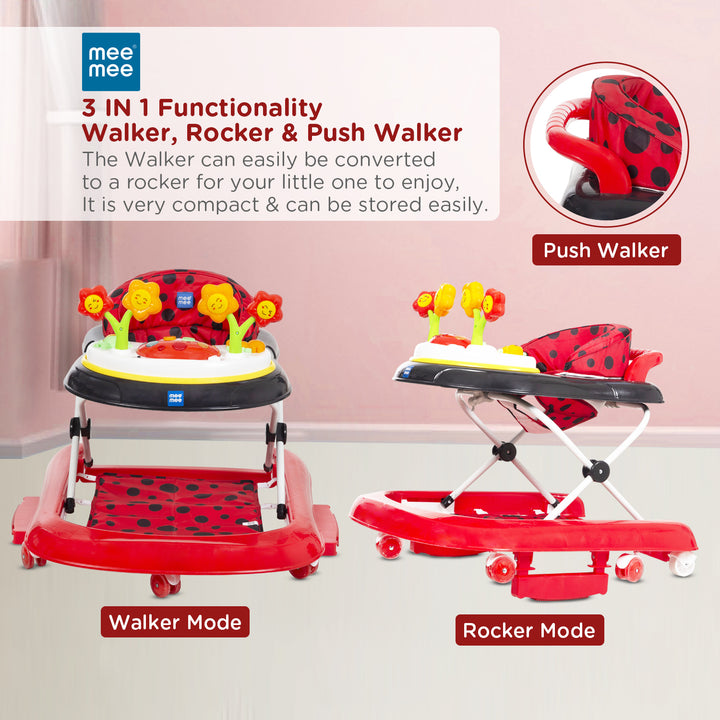 Mee Mee 360° Baby Activity Walker | 3 Level Adjustable Height, Foot Mat, Detachable Toy Bar
