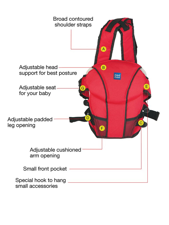 One should definitely buy Mee Mee baby carrier as it has some unique features which make it sacrosanct for the baby. The babys sensitive neck and scalp area are supported and protected by the in-built soft cushioning. Support and comfort is provided to the parent as well through the attached cross straps at the back. There is a hook on one side which is provided for carrying items like toys, small bags and bottles for milk, juice, water, etc. It supports a weight capacity of up to 13 kg, and can be used for babies till the age of 18 months from the time of birth.