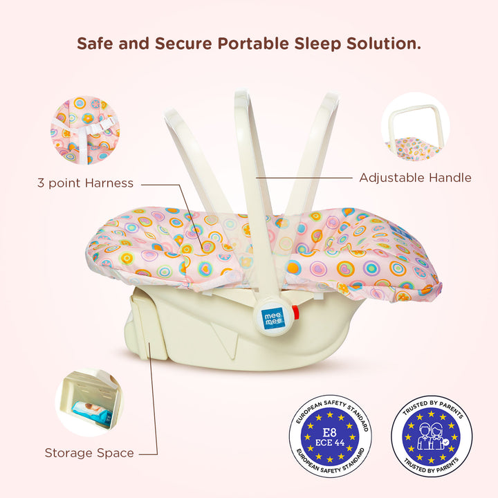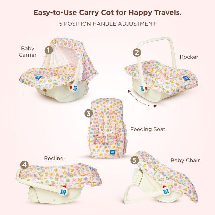 Mee Mee's cozy carry cot and rocker ensures your child is secure during short commutes and while rocking at home.