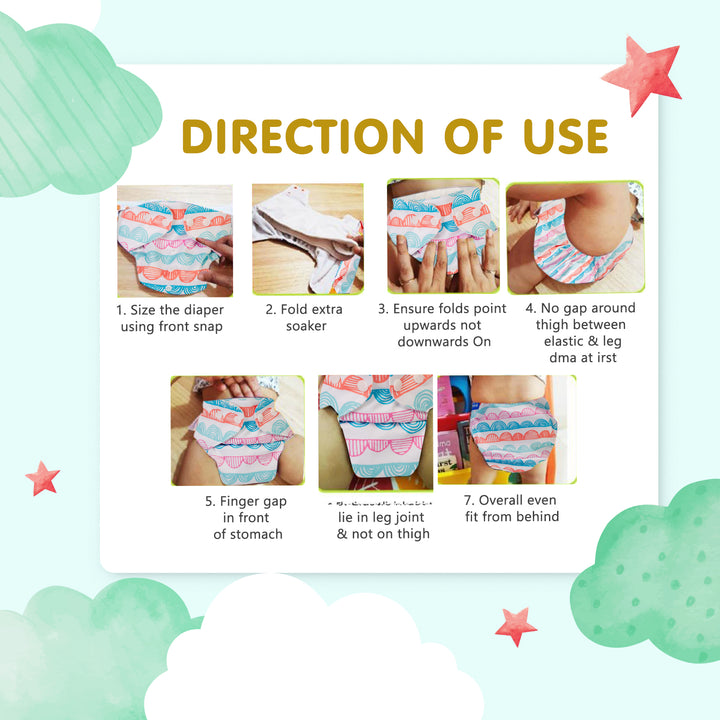 Introducing our washable diapers, crafted with a hypoallergenic soft cloth to ensure gentle contact with your baby's delicate skin. Designed with adjustable buttons to accommodate growing babies, these diapers feature antileak elastic to prevent leaks and openings for absorbing pads for enhanced absorbency. The breathable fabric promotes airflow, keeping your baby's skin dry and comfortable. Available in sizes ranging from Small to XL, these diapers are easy to wear and can be conveniently washed by hand or machine, offering both comfort and convenience for you and your little one.
