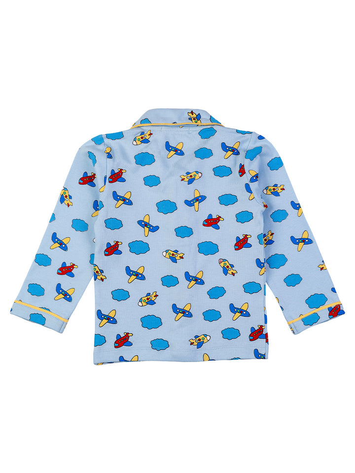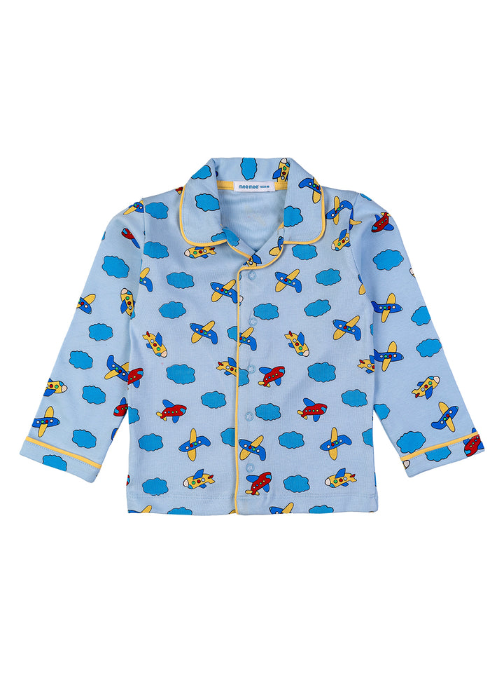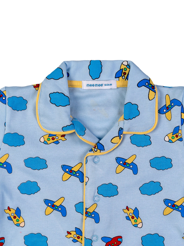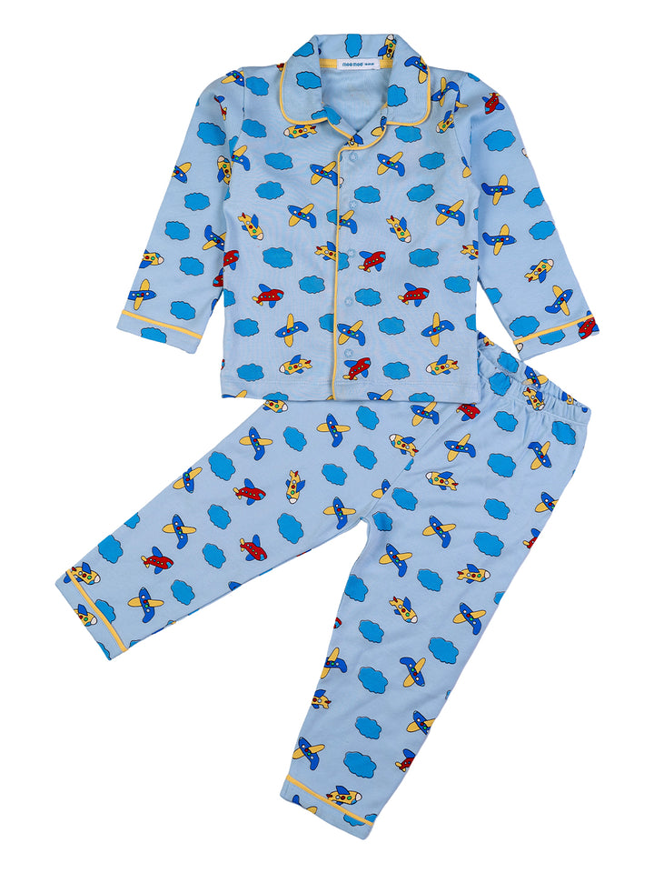 Mee Mee Aqua Cotton Unisex Nightsuit – Airplane & Cloud Print | Full Sleeves & Pajamas