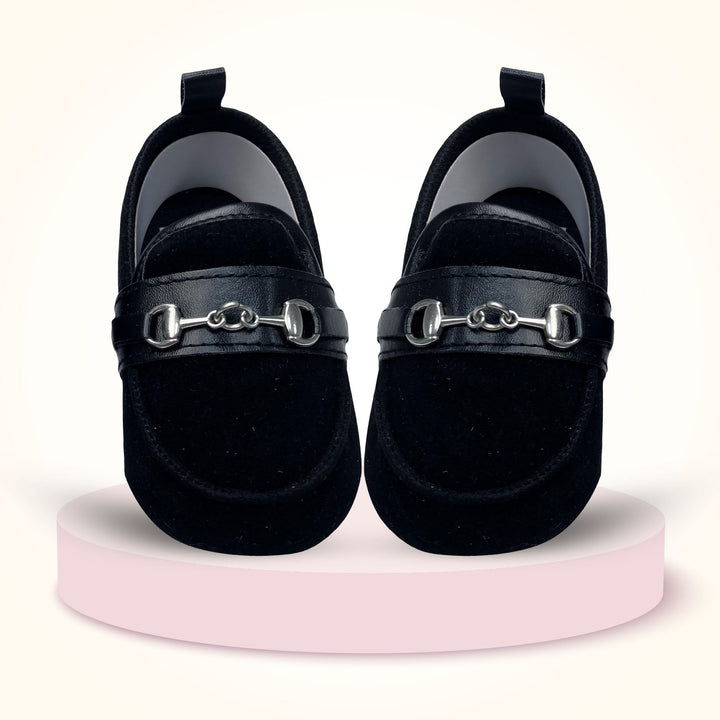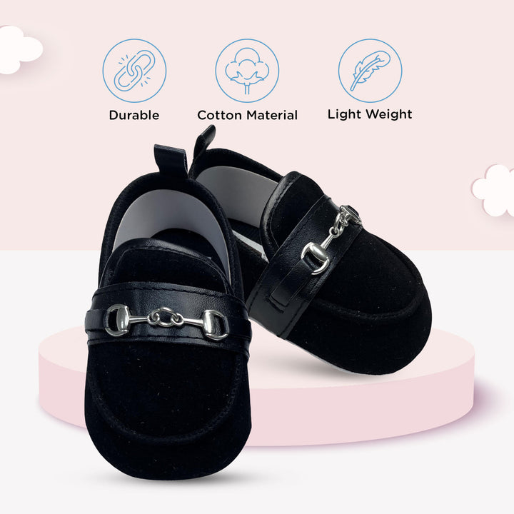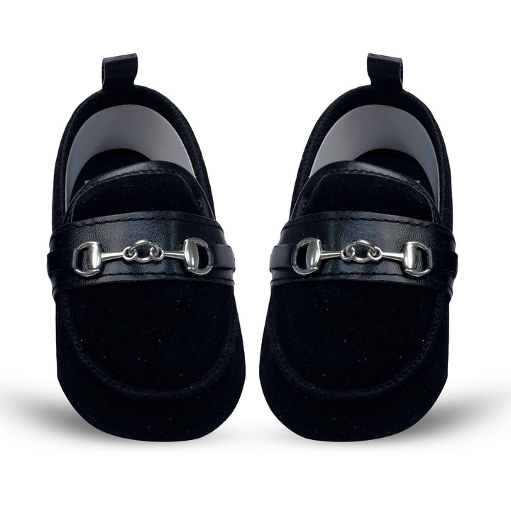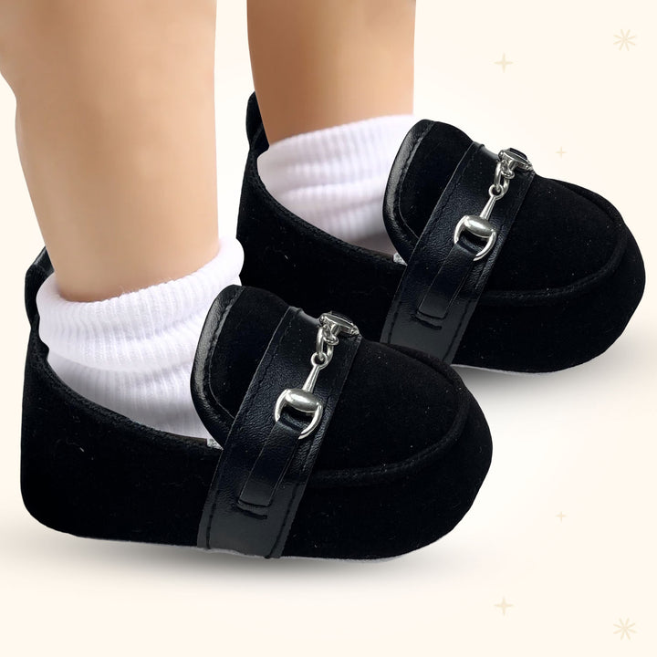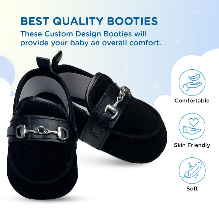MEE MEE Baby Booties: Adorable Black Shoes Featuring a Trendy Horse Bit Accent