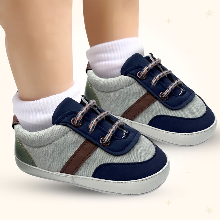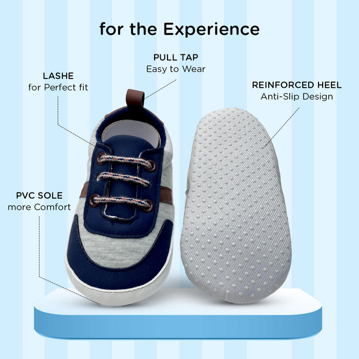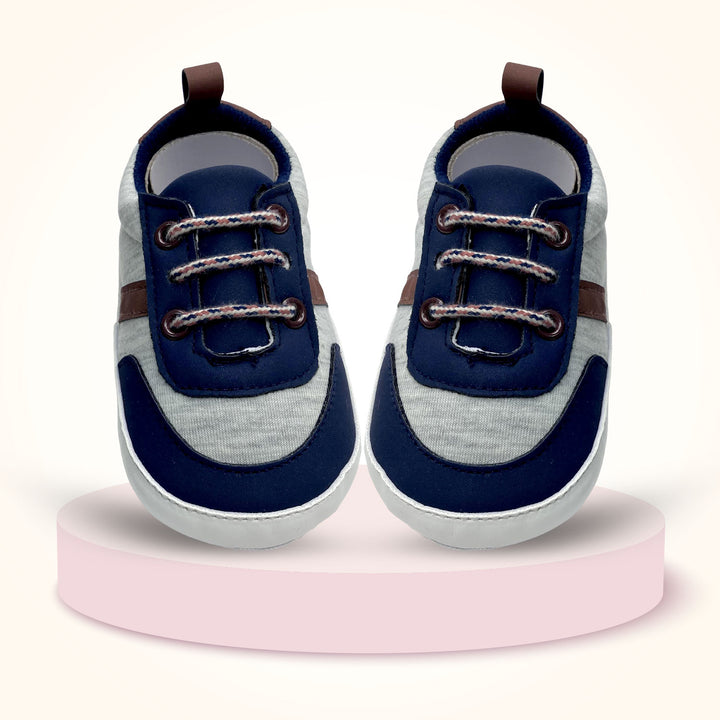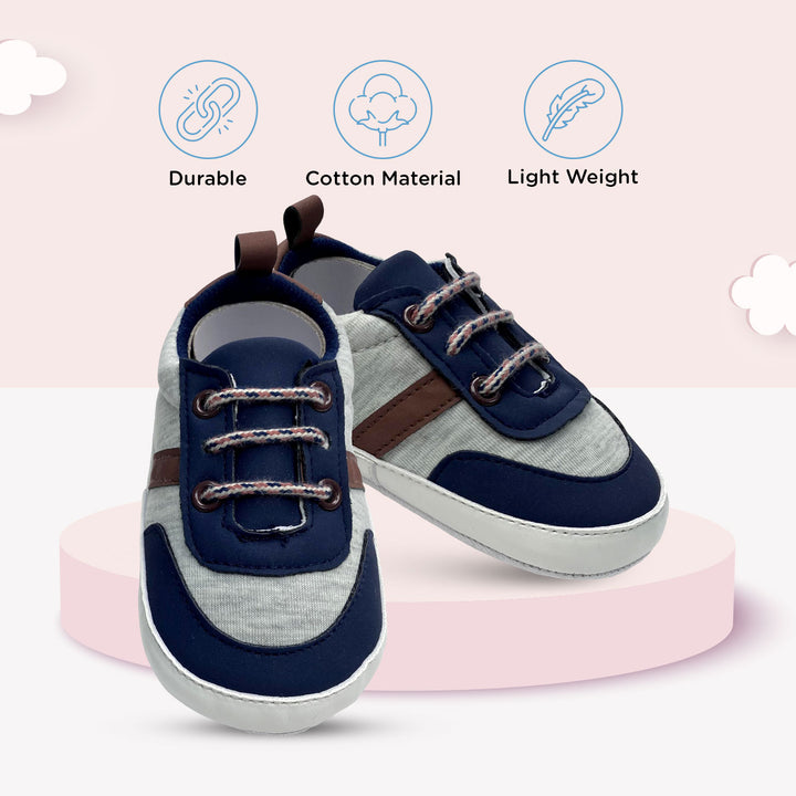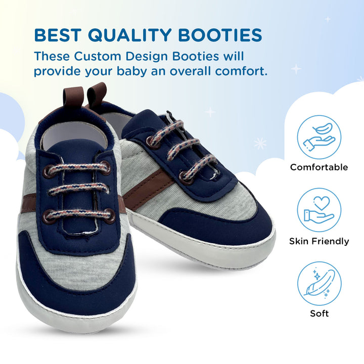 Mee Mee Baby Booties - Navy Blue & Gray Soft Shoes with Lace-up Design