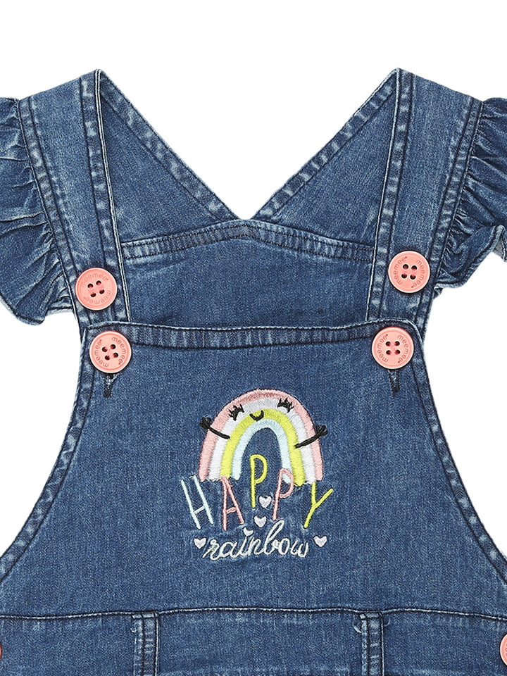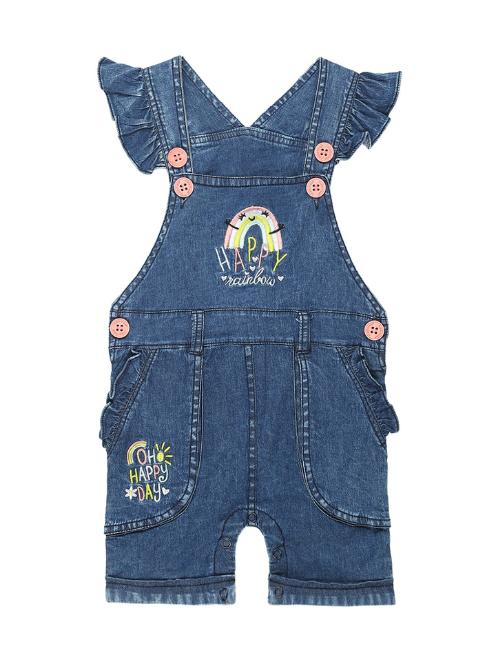 Give your little one a stylish look with this indigo denim romper set by Mee Mee. The dungaree features adorable embroidery, adjustable straps, and button details, paired with a soft printed T-shirt for all-day comfort. Stretchable elastane fabric ensures ease of movement, making it perfect for playdates and outings.