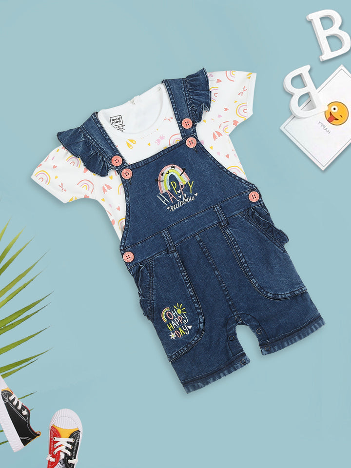 Mee Mee Baby Denim Romper Set – Indigo Dungaree with Printed Tee in Soft Elastane Fabric
