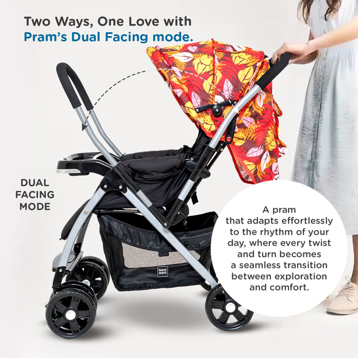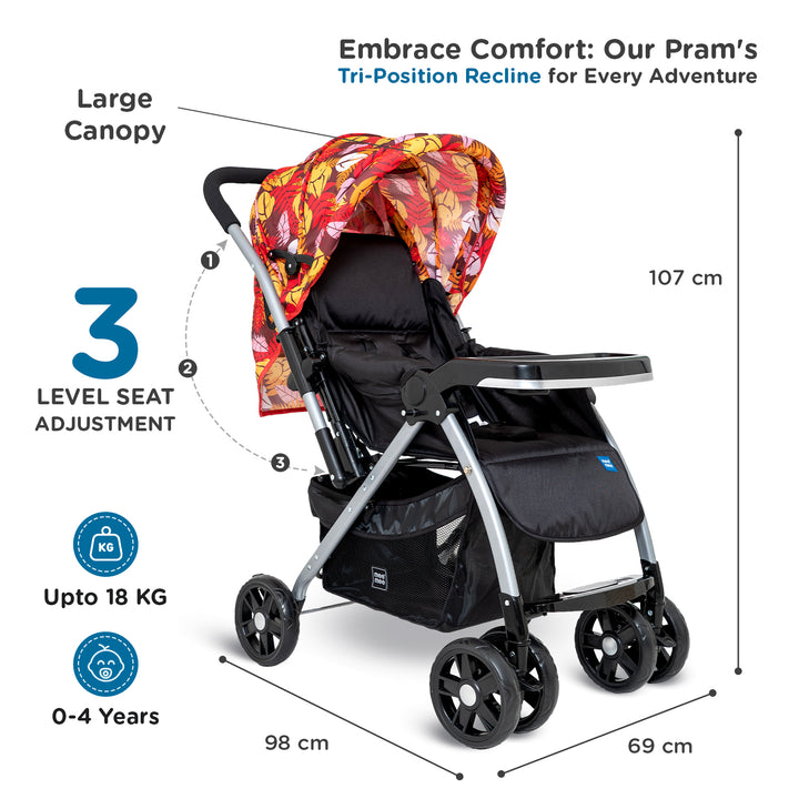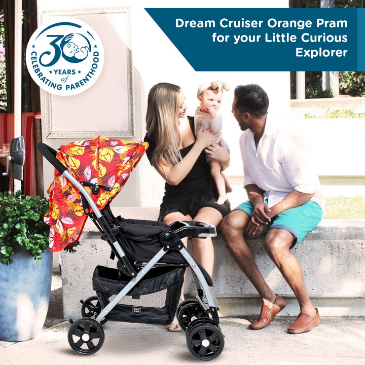 Mee Mee Baby Stroller with Reversible Handle and Canopy, Orange