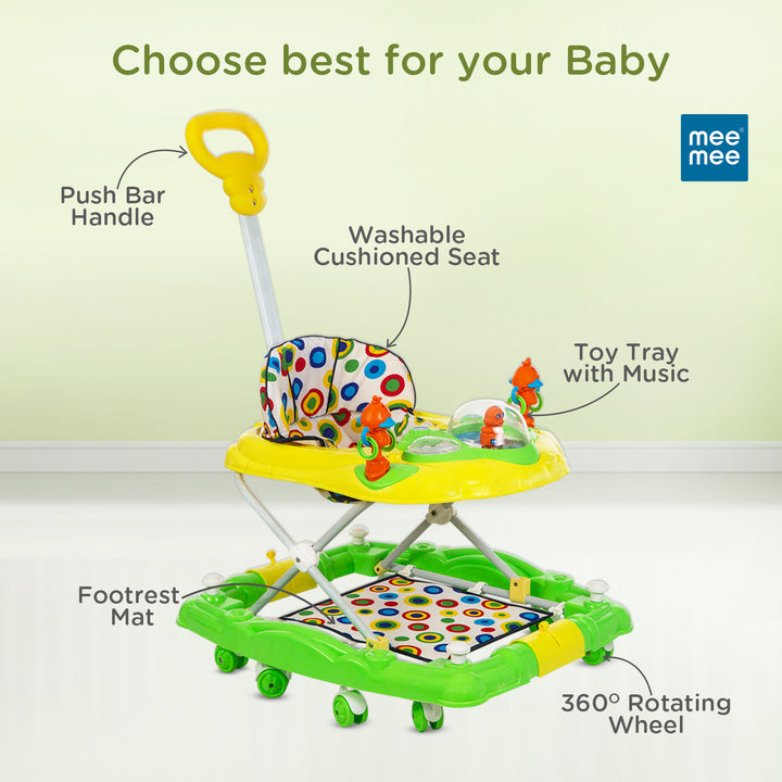 Mee Mee Baby Walker with Adjustable Height & Toy Tray – Safe & Comfortable for Little Walkers