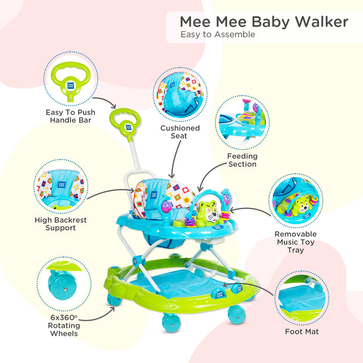Mee Mee Baby Walker with Adjustable Height & Toy Tray – Safe & Comfortable for Little Walkers