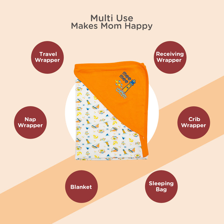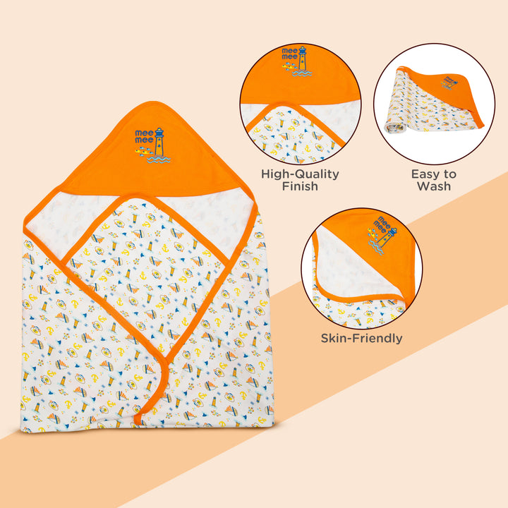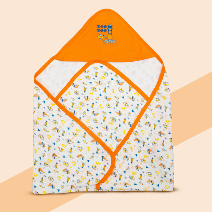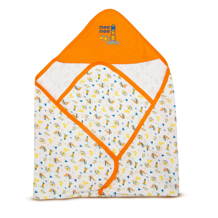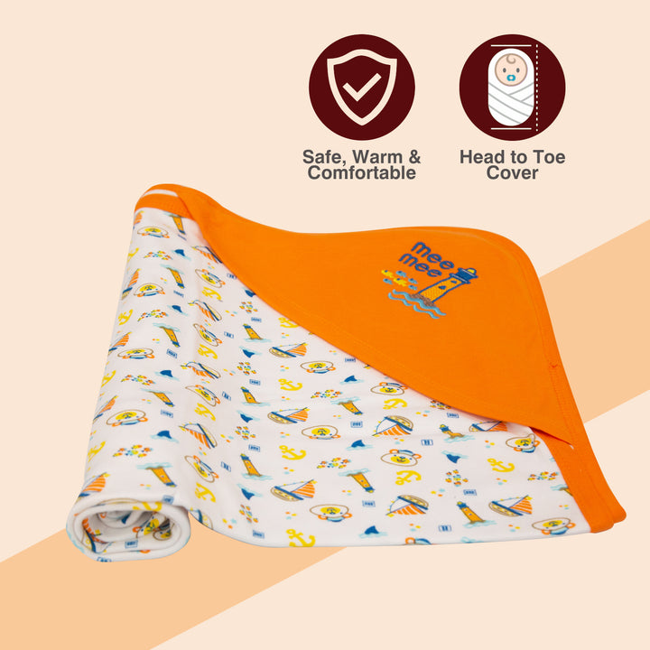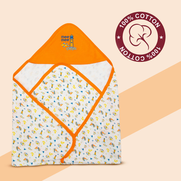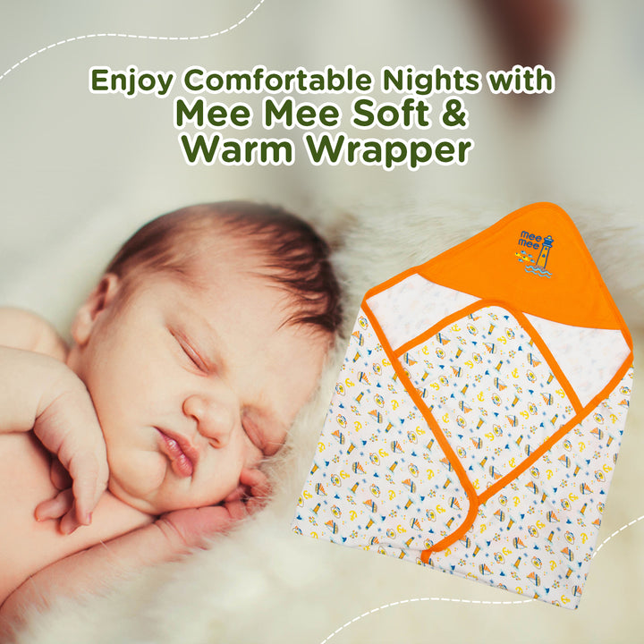 Mee Mee Baby Warm and Soft Swaddle Wrapper Hooded with Hood Blanket for Newborn Babies | Light Weight | Easy Maintenance | Full Coverage | Orange | 6+ Months | 480 Grams |