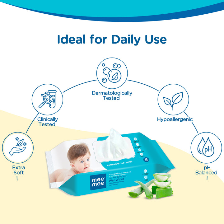 Mee Mee Baby Wet Wipes – Spunlace Fabric, Aloe Vera Infused, Hypoallergenic & Alcohol-Free