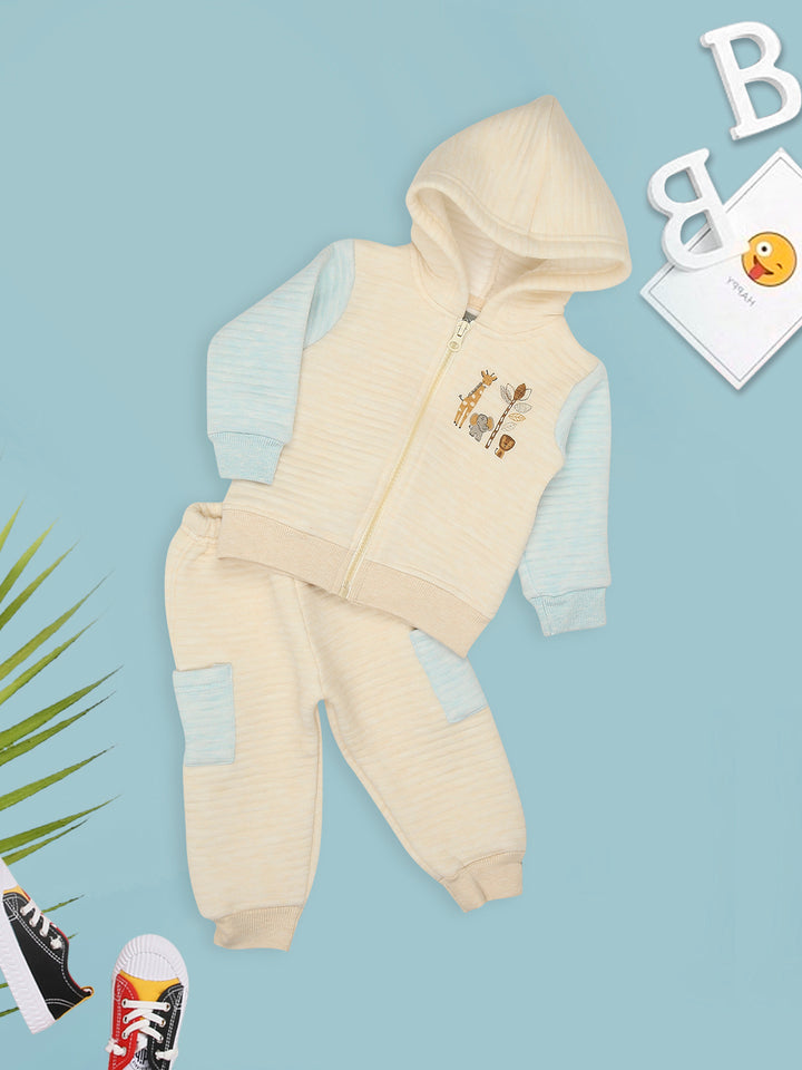 Mee Mee Beige Animal Print Polyfill Jogger Set – Cozy & Stylish Hooded Outfit for Kids
