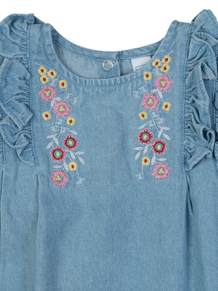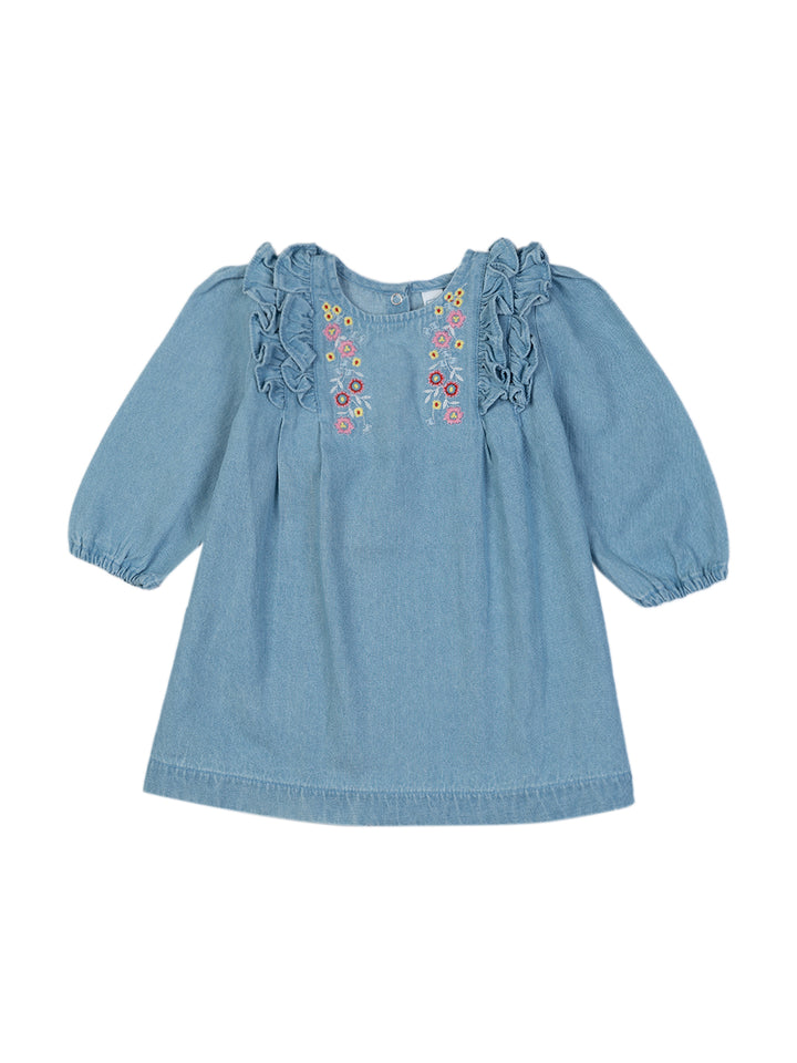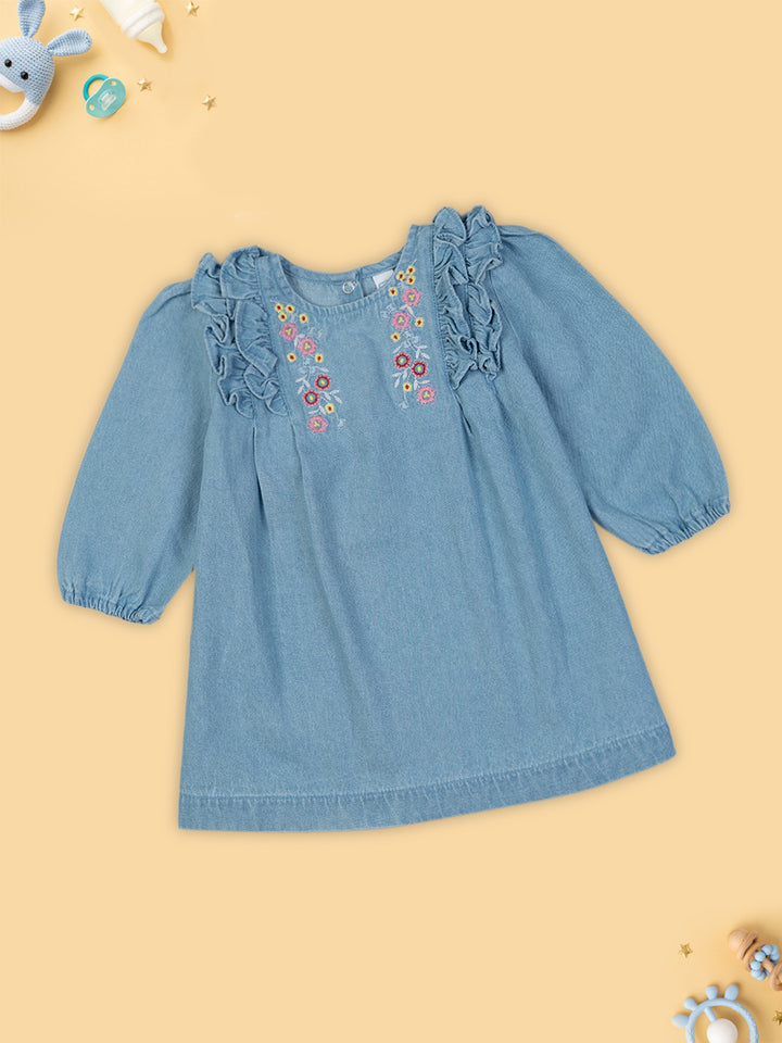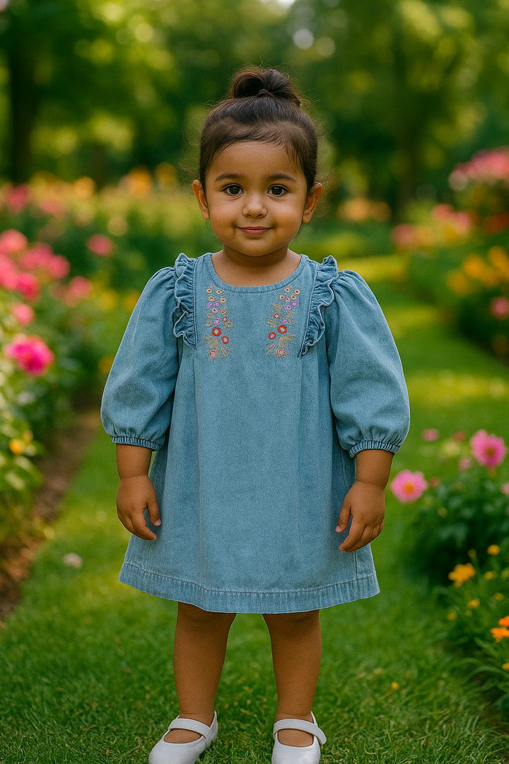 Mee Mee Blue Denim Frock with Floral Embroidery – Stylish & Comfortable for Girls