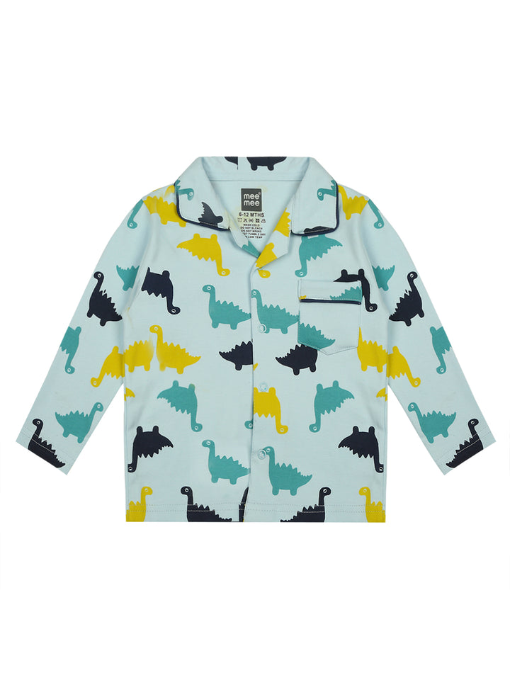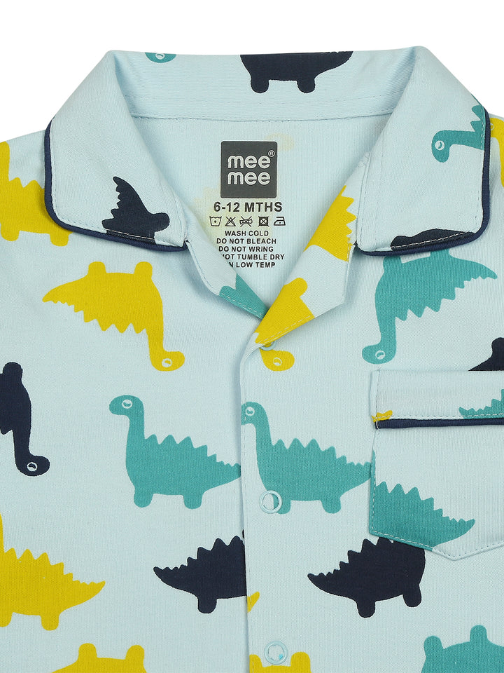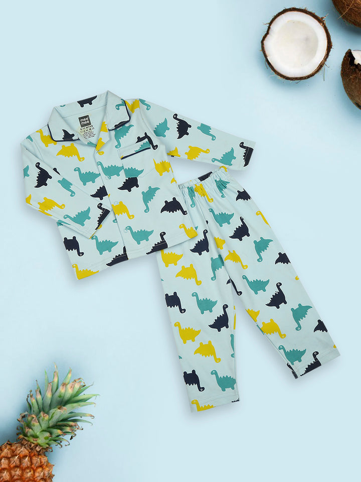 Mee Mee Boys' Cotton Night Suit – Light Blue, Fun Dinosaur Print