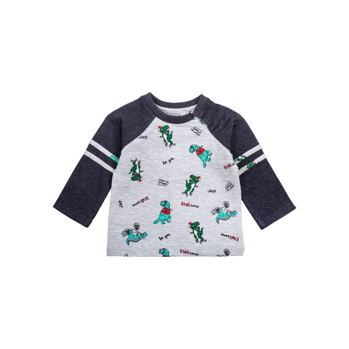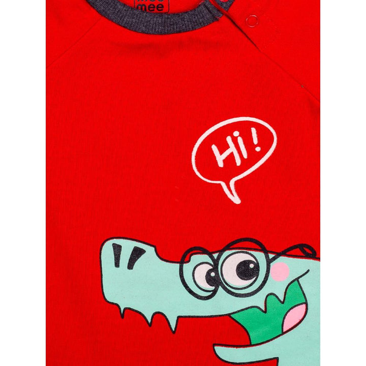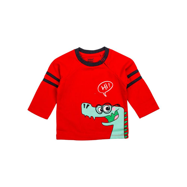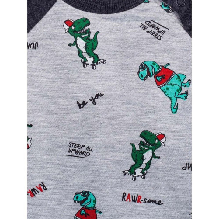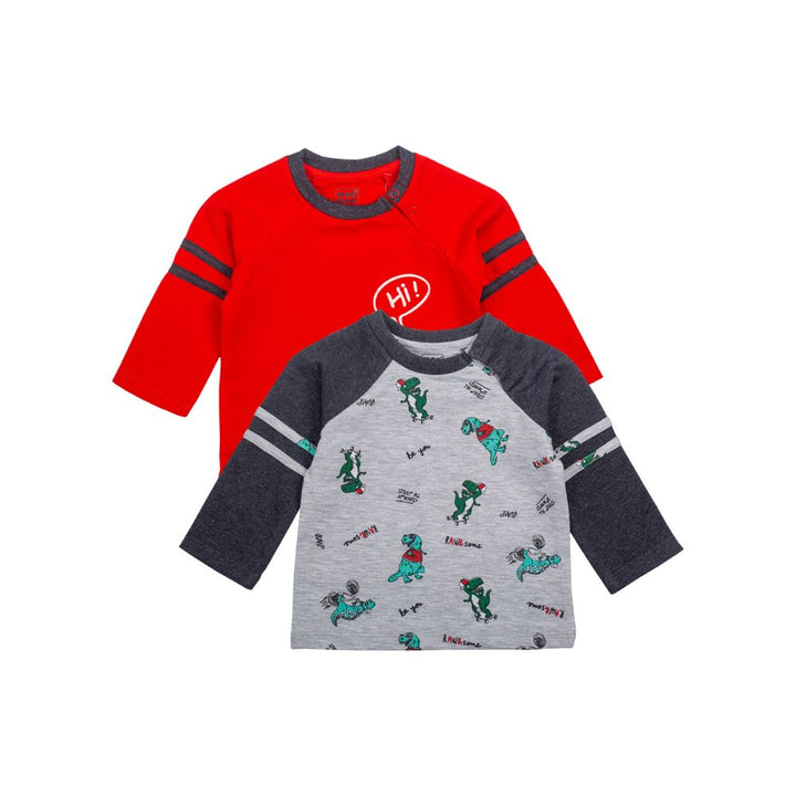 Our Fashion Value Pack T-Shirts for Boys are made from soft jersey knit with standout patterns & specially designed graphics. This Grey melange and Red , One Printed with Chest print and one Dino printed tee set is best fit for your baby boy’s wardrobe. Made with 100% Cotton your child will be comfortable all day long in these. The tee features round neck, pullover style with proper snap button access for easy dressing. This tee is perfect for casual occasions.