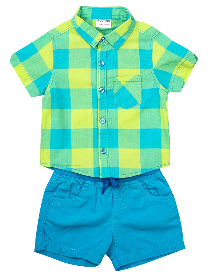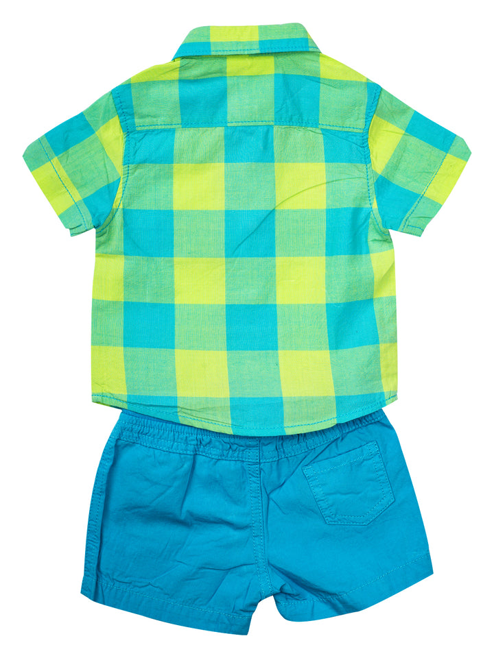 We bring to you this stylish Shorts set with Green & Blue Checks Shirt & Blue woven shorts that will be a great addition to your baby boy's essentials collection. Crafted from soft fabric, the set has a Shirt that features Collared neck and an elasticated waist shorts for easy dressing. Made from 100% cotton this Shorts set is comfy and perfect for all your baby’s needs.