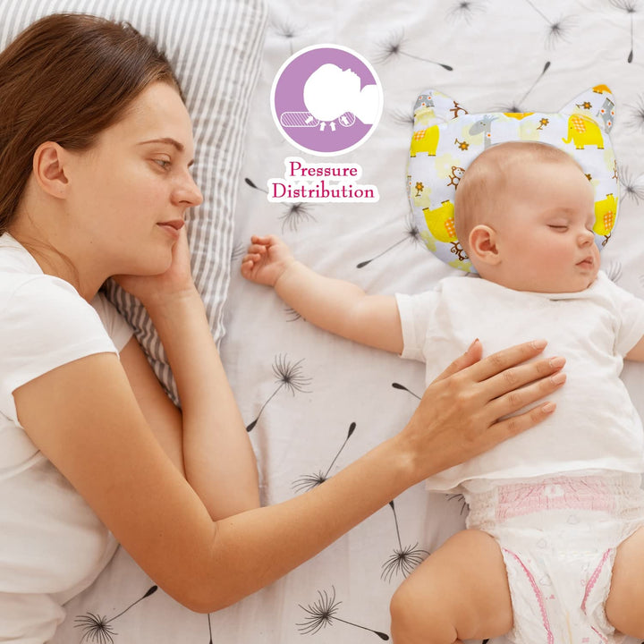 This pillow has a concave design in the middle that helps to shape your baby's head and evenly distributes the pressure to prevent flat head.This pillow is made of 100% premium quality