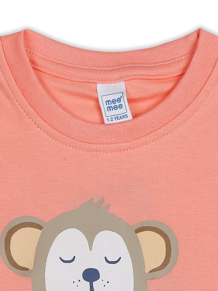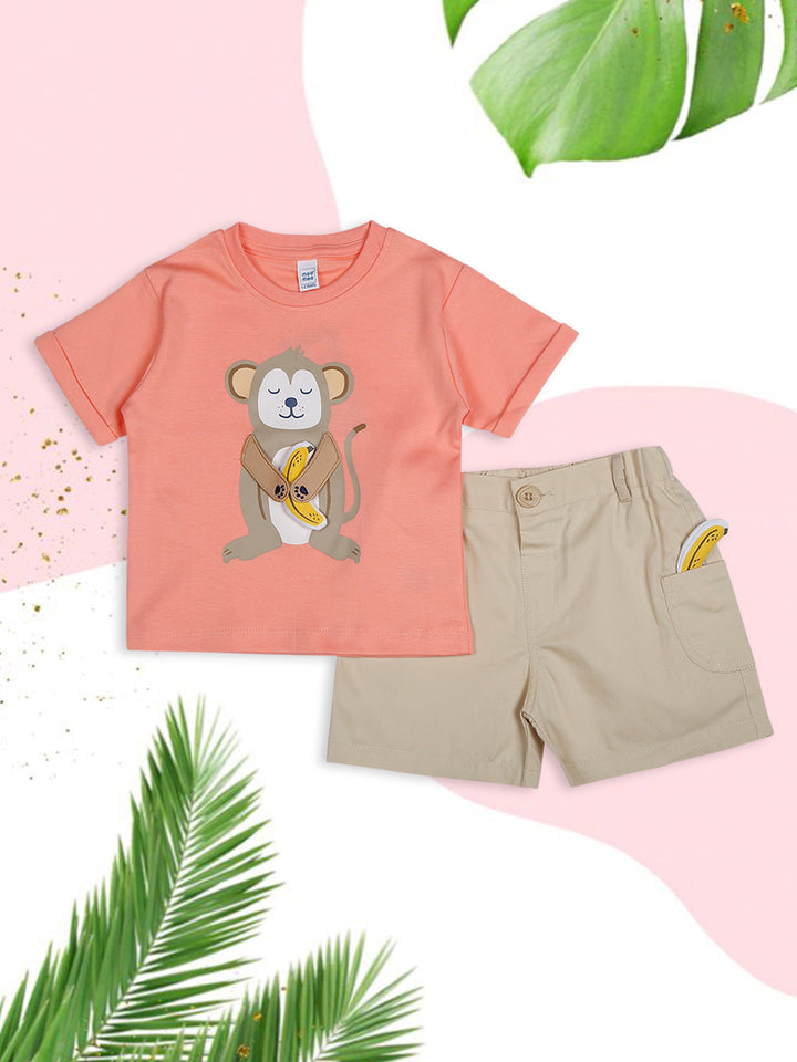 Mee Mee Coral Monkey Print Cotton Short Set with Playful Banana Detail – Comfortable & Stylish