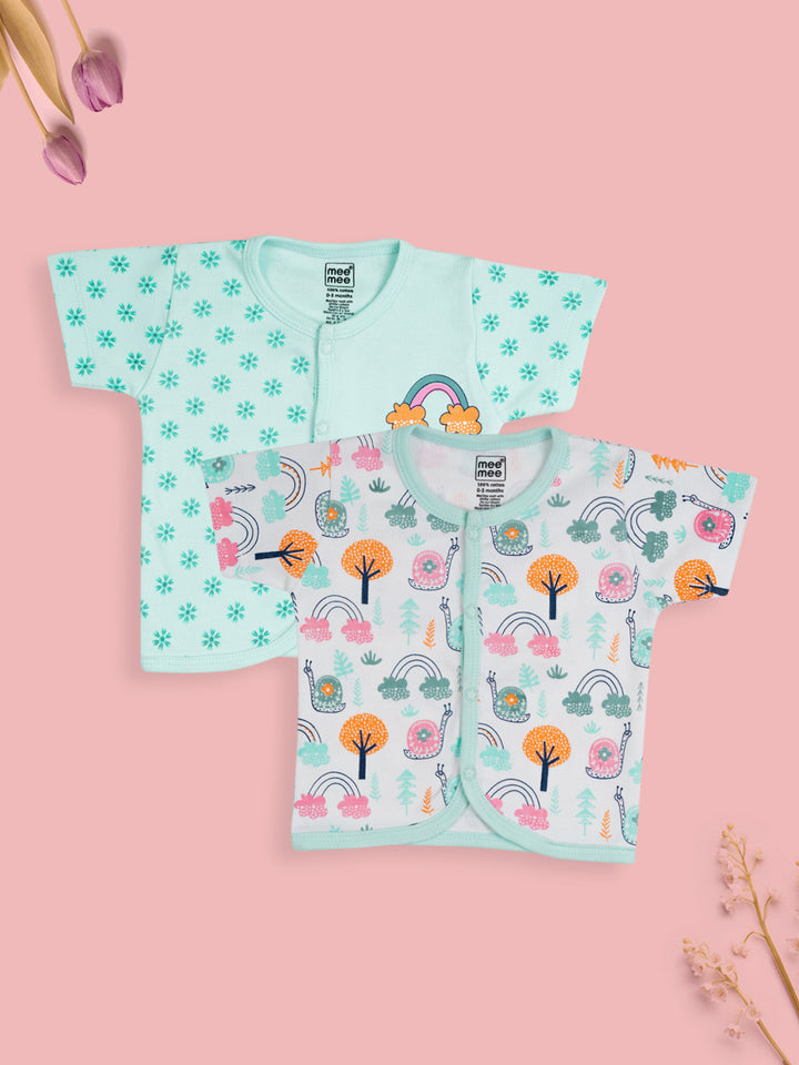 Mee Mee Cotton Jabala Value Pack – Mint Snail & Rainbow Printed Baby Tops (Pack of 2)