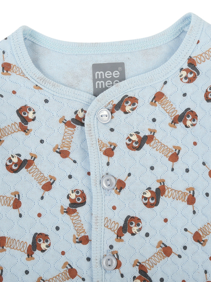Mee Mee Cotton Polyfill Set – Light Blue, Dog Print Jacket & Quilted Joggers for Cozy Comfort