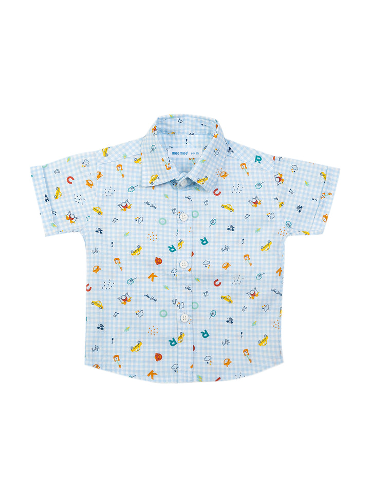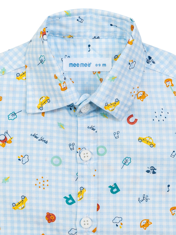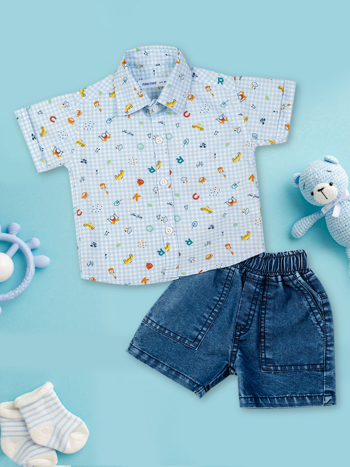 Mee Mee Cotton Short Set Light Blue with Fun Print and Denim Shorts for Boys
