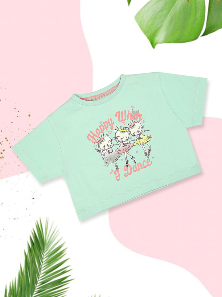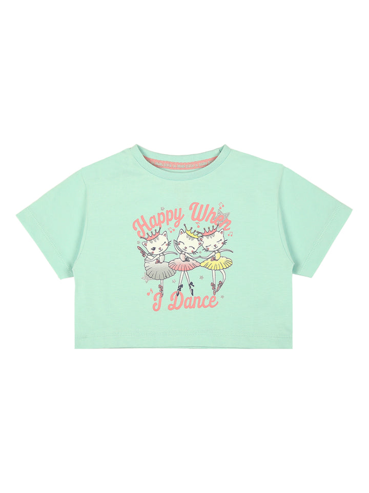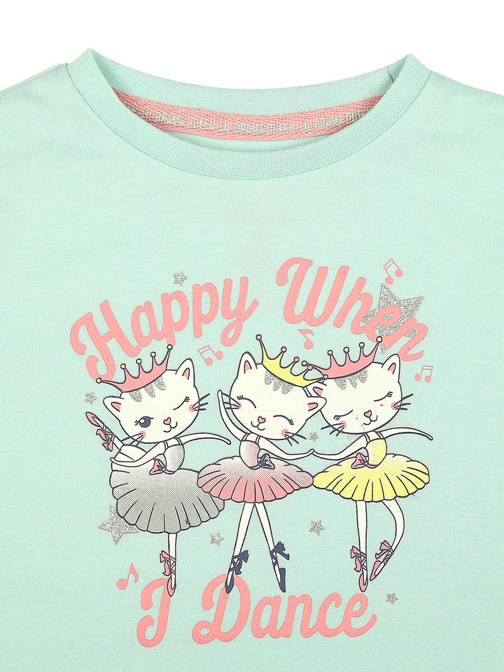Mee Mee Cotton T-Shirt – Mint, Ballerina Kitty Print, Soft & Breathable Fabric for Kids