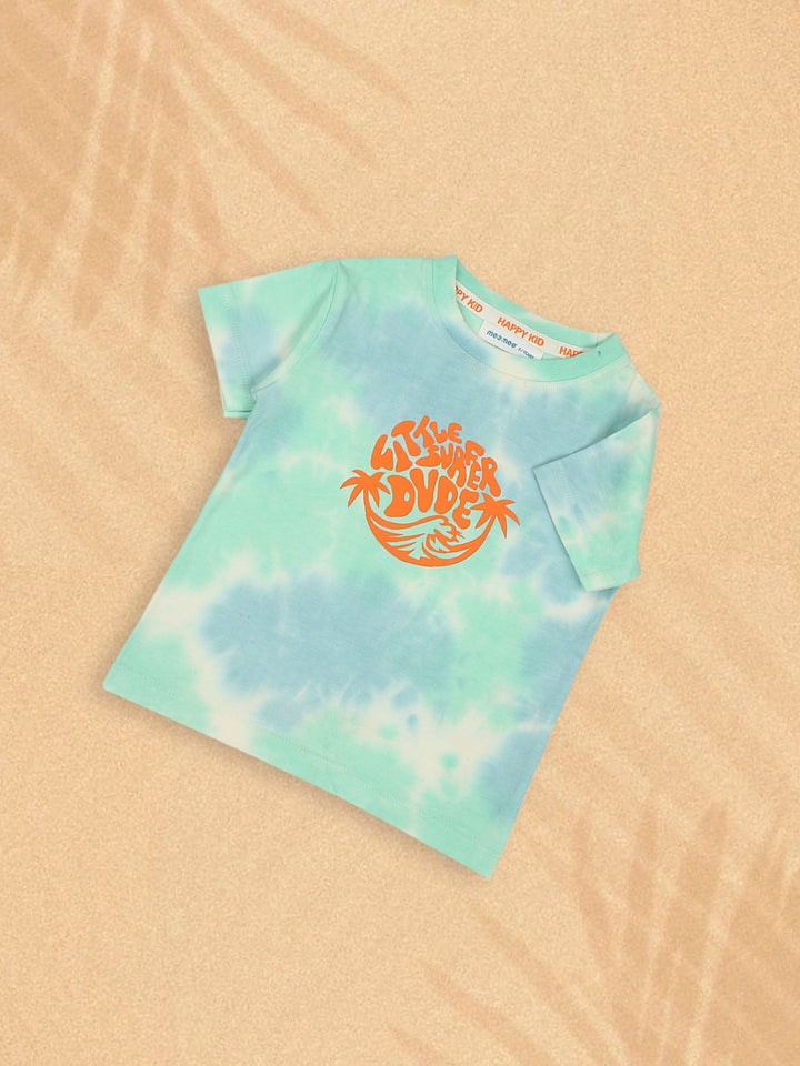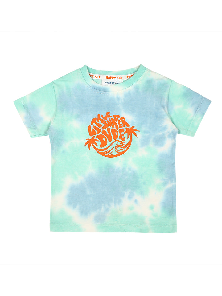Mee Mee Cotton T-Shirt – Mint Tie-Dye, Soft Fabric, Surf Dude Print, Casual Wear