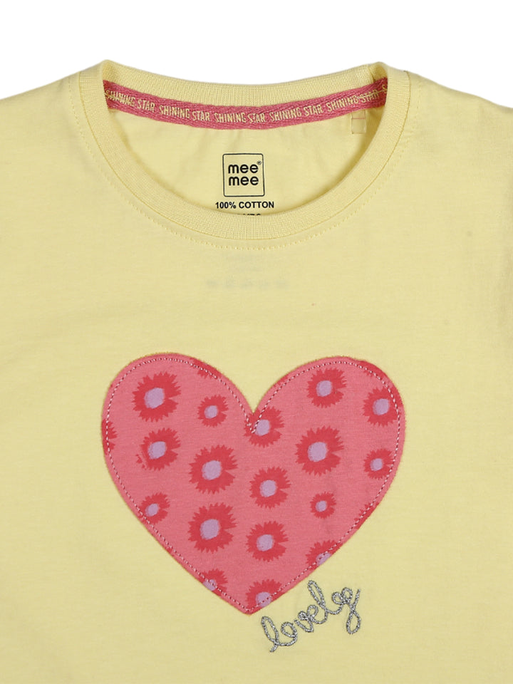 Mee Mee Cotton T-Shirt – Yellow, Heart Print, Soft & Comfortable Casual Wear