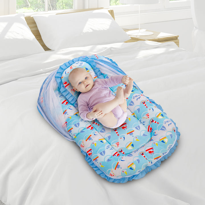 Mee Mee Cushioned Baby Mattress Set with Mosquito Net and Pillow - Sea