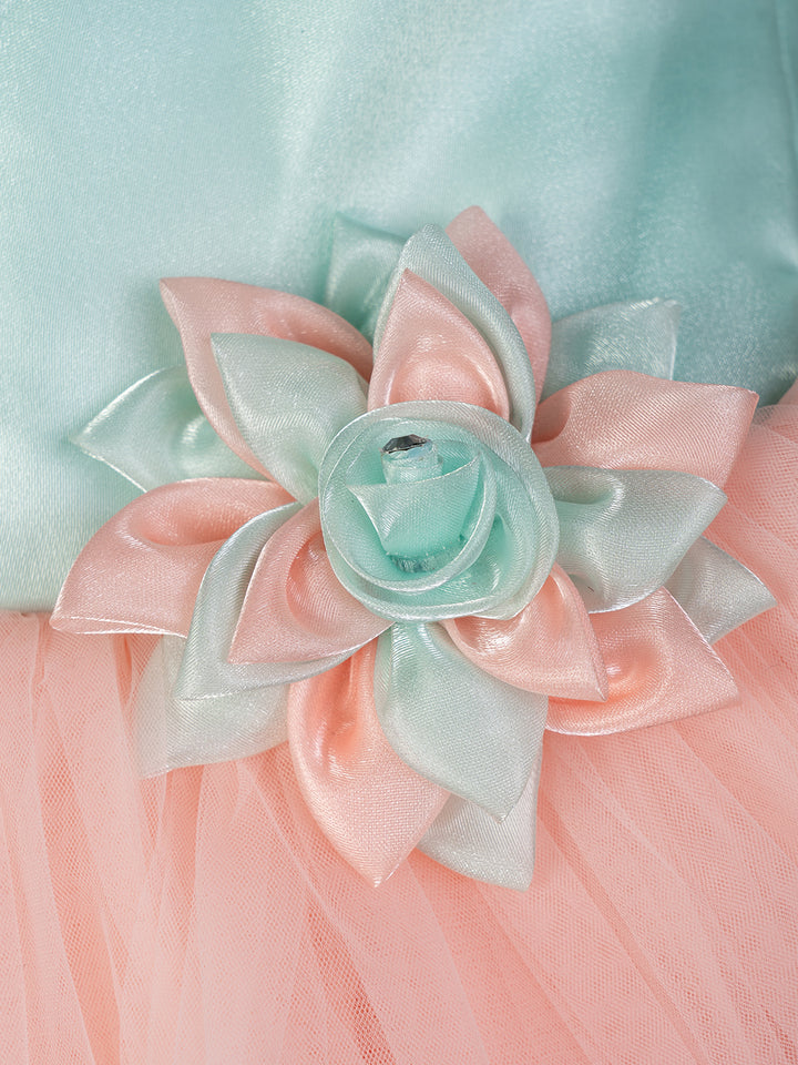 Mee Mee Elegant Pink & Blue Satin and Net Frock – Stylish Party Wear for Girls