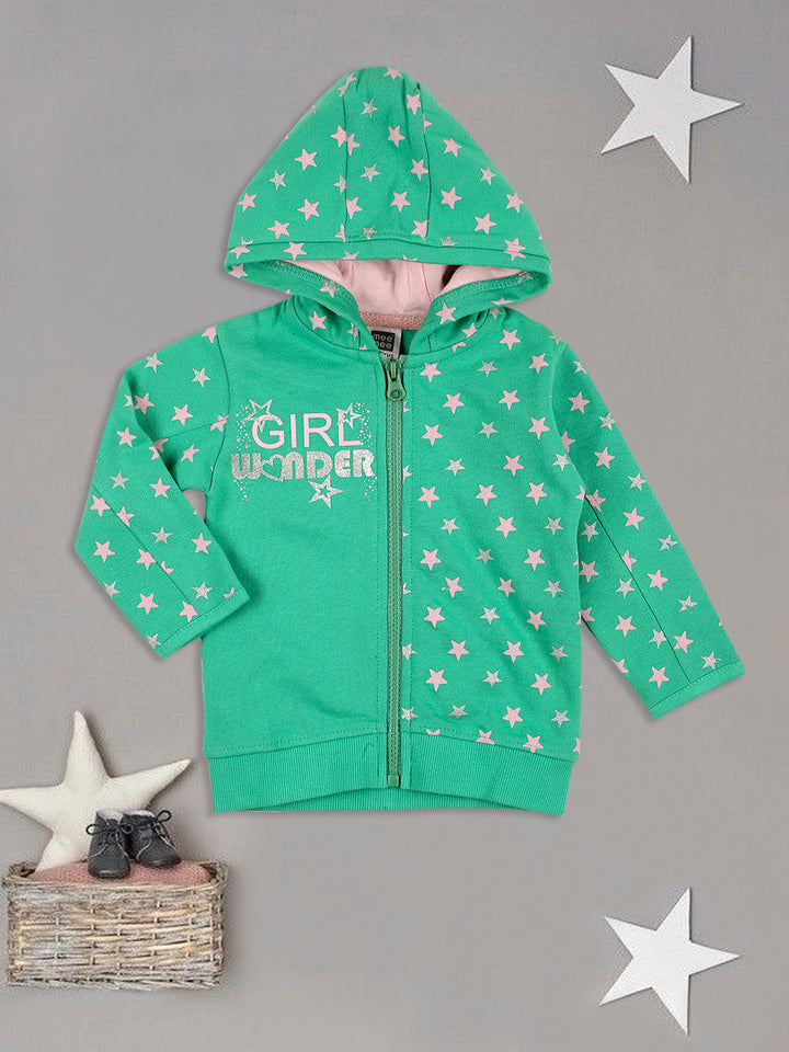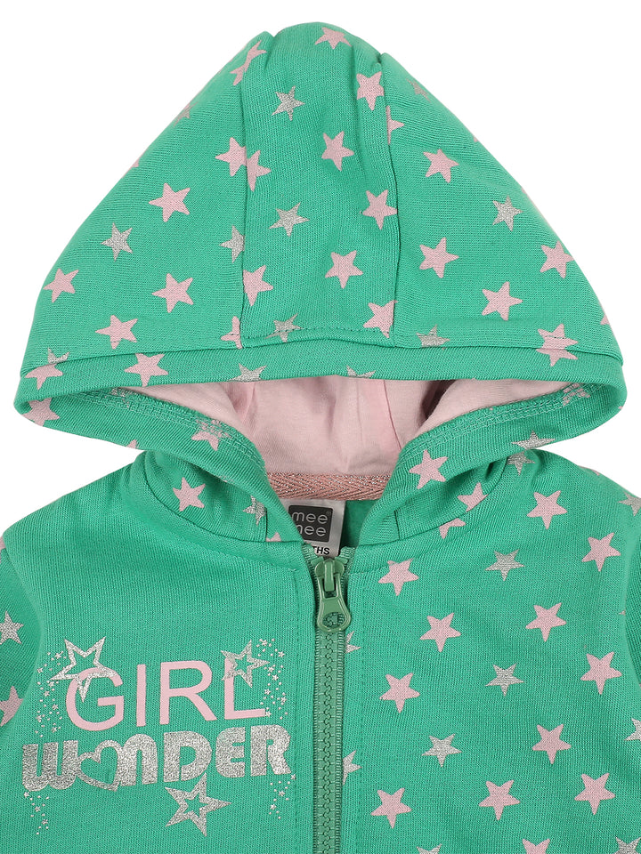 Mee Mee Girls' Fleece Jacket – Cozy Hooded Zip-Up with Star Print for Stylish Warmth