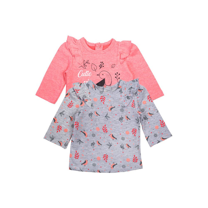 Girls Pack Of 2 TopGrey Melange Pink Melange