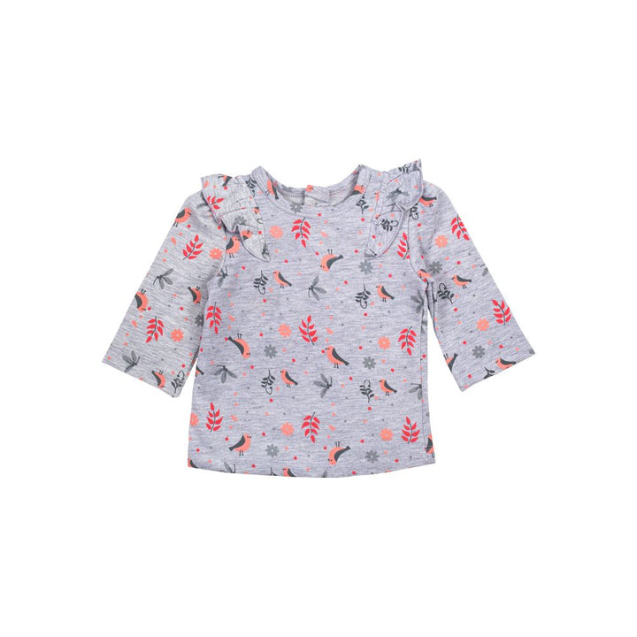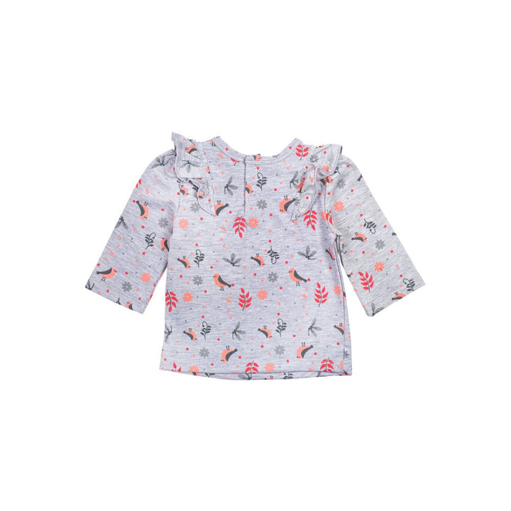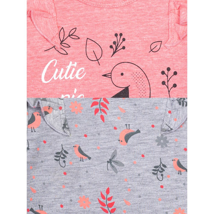 Our Fashion Value Pack Tops for Girls are made from soft jersey knit with standout patterns specially designed graphics. This Grey Melange Pink Melange printed , one solid with chest print and one bird leaf printed tee set is best fit for your baby girls wardrobe. Made with 100% Cotton your child will be comfortable all day long in these. The tee features round neck, pullover style with proper snap button access for easy dressing. This tee is perfect for casual occasions.