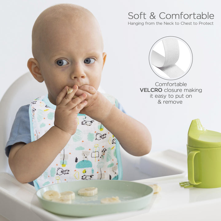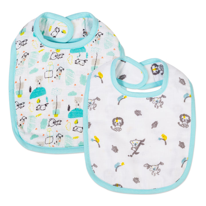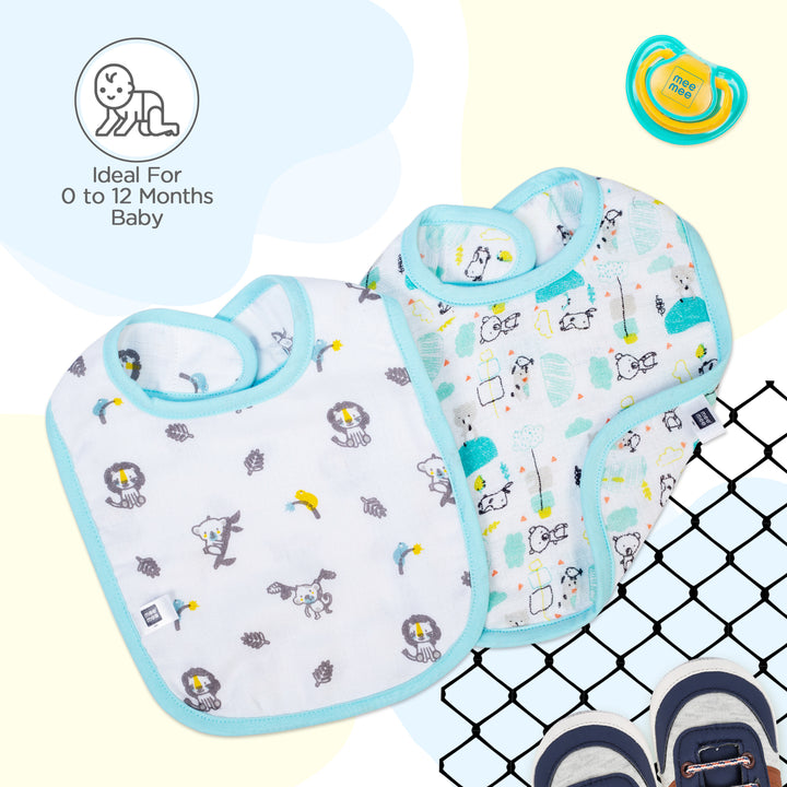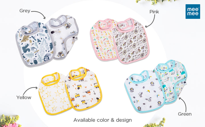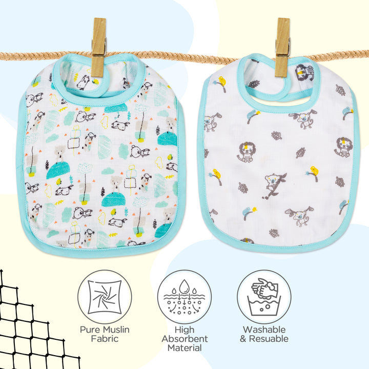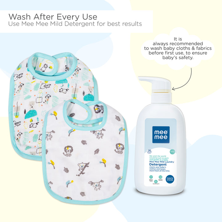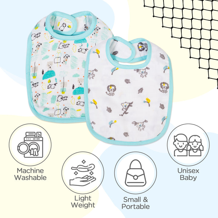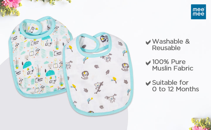 MEE MEE Green Bibs Featuring Cute Animals & Birds: Perfect for Playtime and Mealtime Fun!