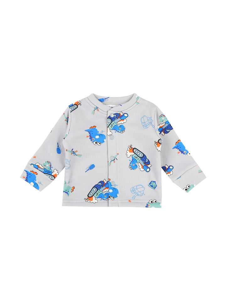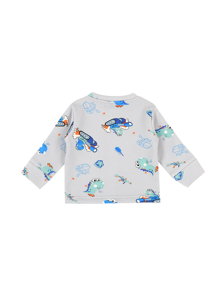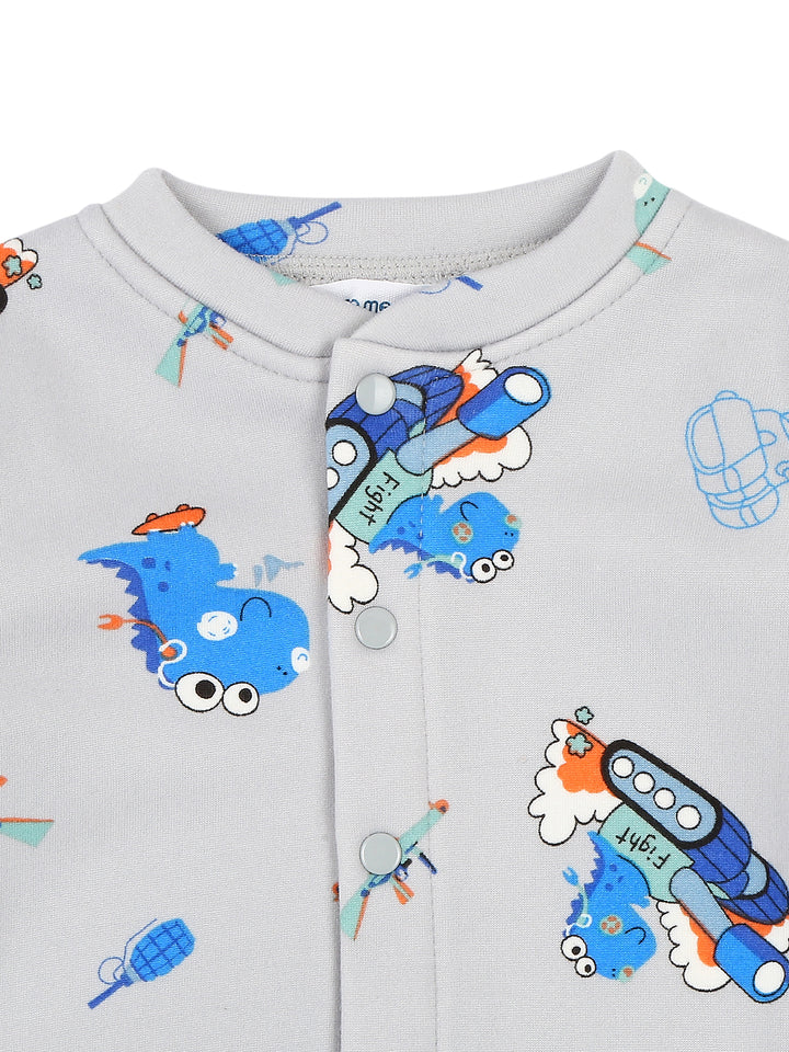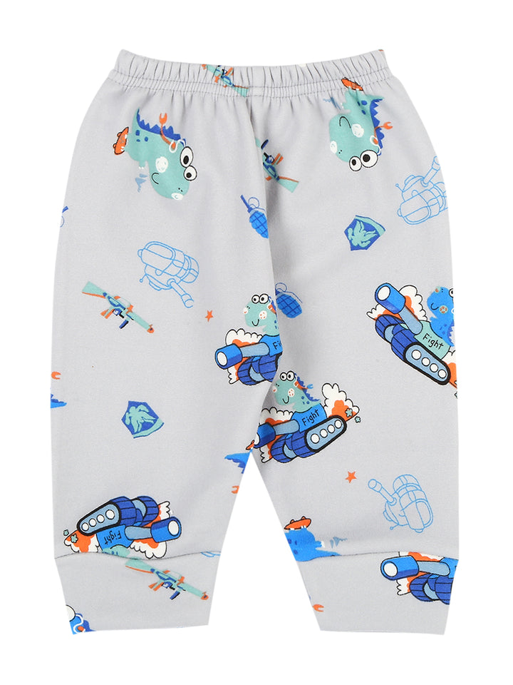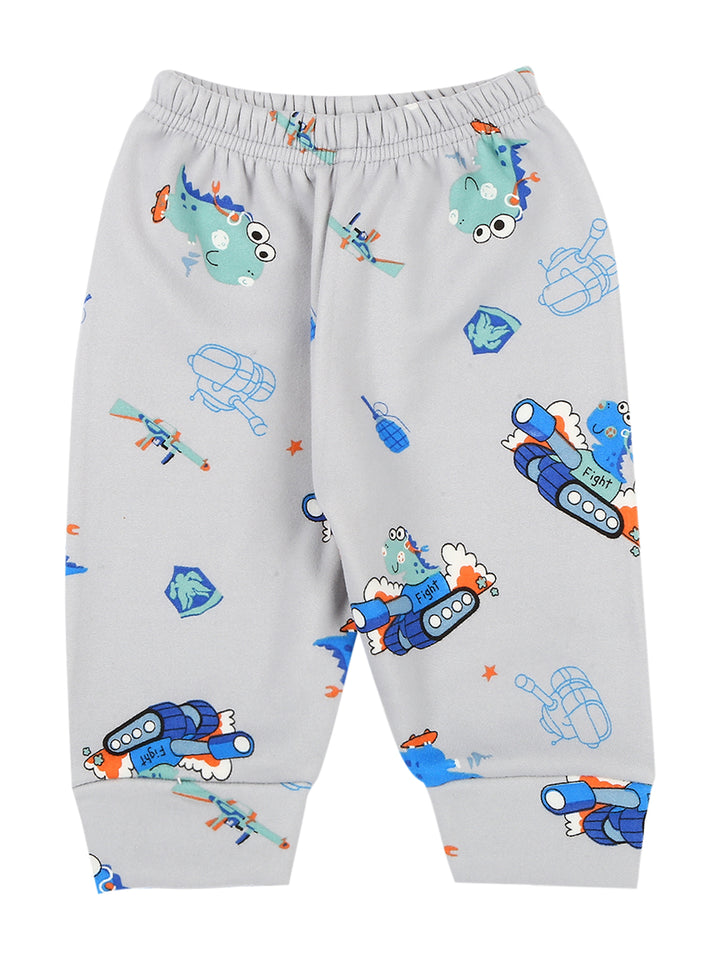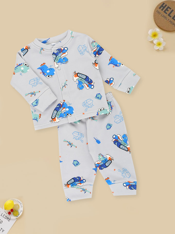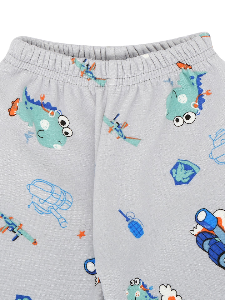 Mee Mee Grey Cotton Night Suit for Kids with Adorable Dino & Tank Print
