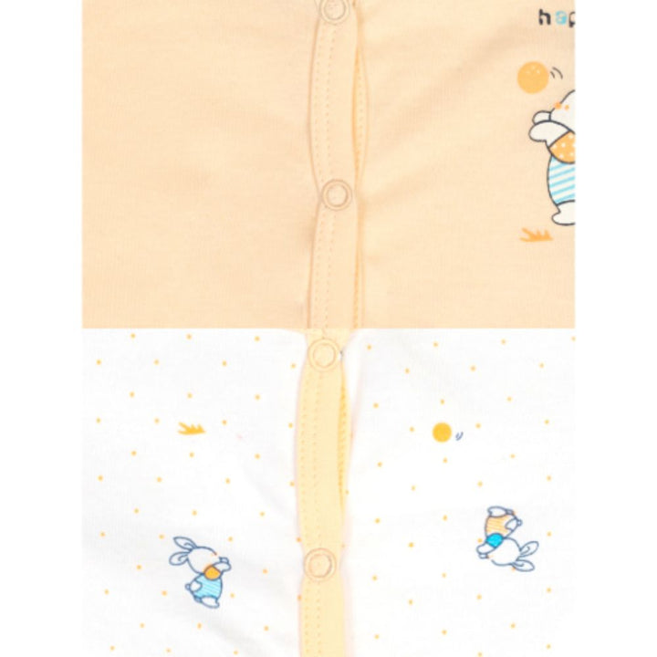 Our Jabla pack is a good combination of style and comfort, It will be an perfect addition to your little infant's wardrobe. This peach and white solid and rabbit printed set is perfect for your baby'scomfy moods.