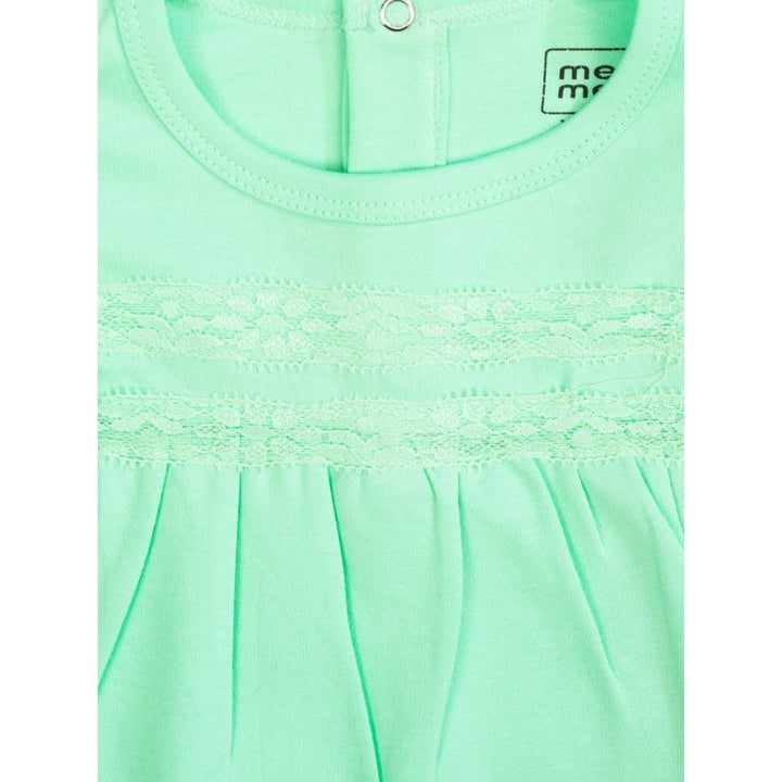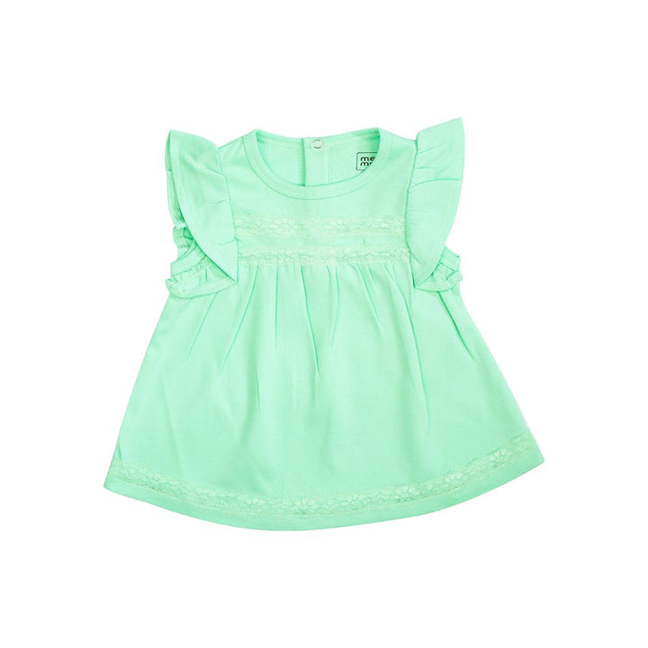 Our Frock is a value pack of good combination of style and comfort, this mint green Frock will be a perfect addition to your little infant?s wardrobe. This pattern makes the set all the more appealing. Made from 100% cotton this frock is comfy, the snap button opening at back makes it easy for changing.