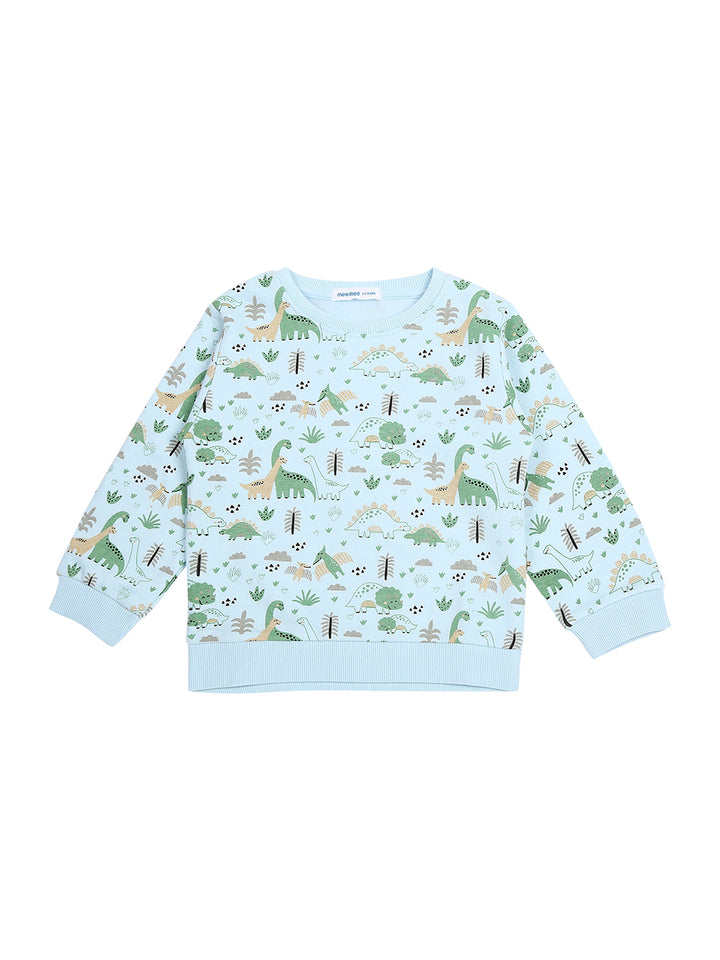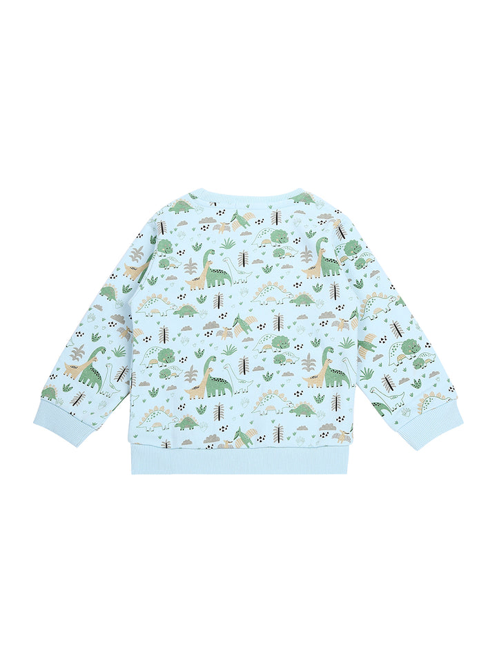 Keep your little one warm and stylish with the Mee Mee light blue jogger set, crafted from soft cotton fleece with a cozy brushed finish. Featuring an adorable all-over dinosaur print, this set includes a long-sleeve sweatshirt and matching joggers with ribbed cuffs for a snug fit. Perfect for casual outings or lounging at home, it ensures all-day comfort and charm.