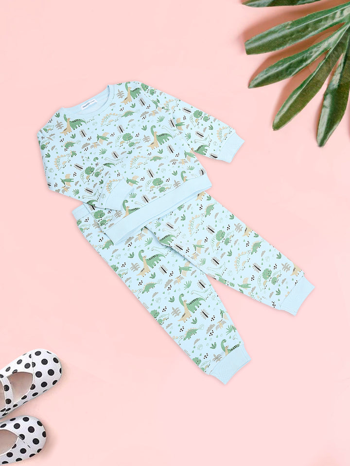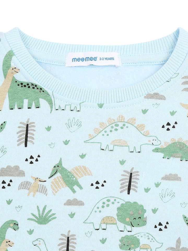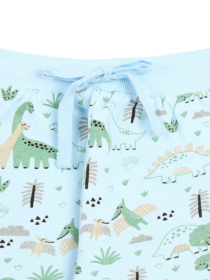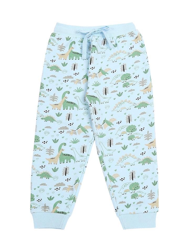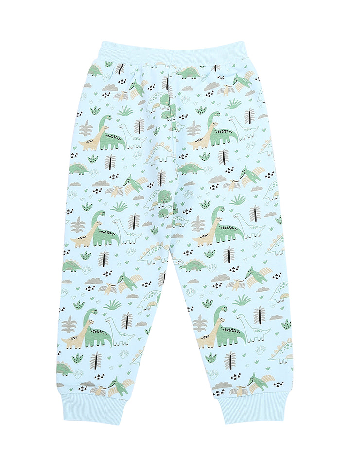 Mee Mee Light Blue Dinosaur Print Jogger Set in Cotton Fleece – Cozy & Stylish
