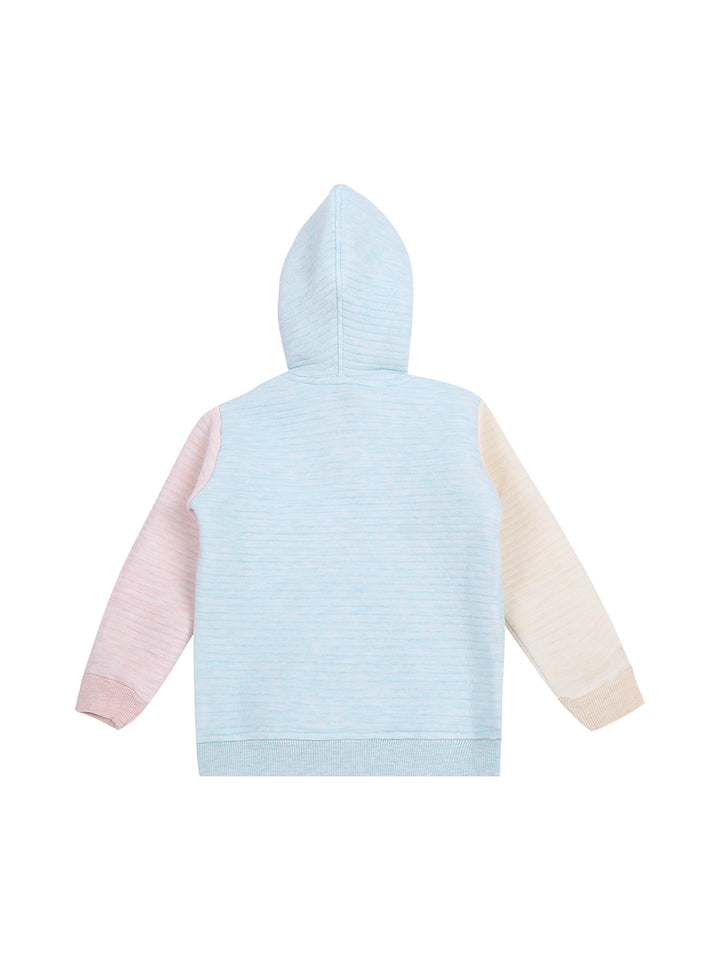 Keep your little one warm and stylish with the Mee Mee light blue jogger set, crafted from soft polyfill fabric. The hooded sweatshirt features an adorable animal print and color-blocked sleeves, adding a playful touch. Paired with matching joggers that offer a snug fit, this set ensures all-day comfort for active kids. Perfect for casual outings or cozy indoor wear.