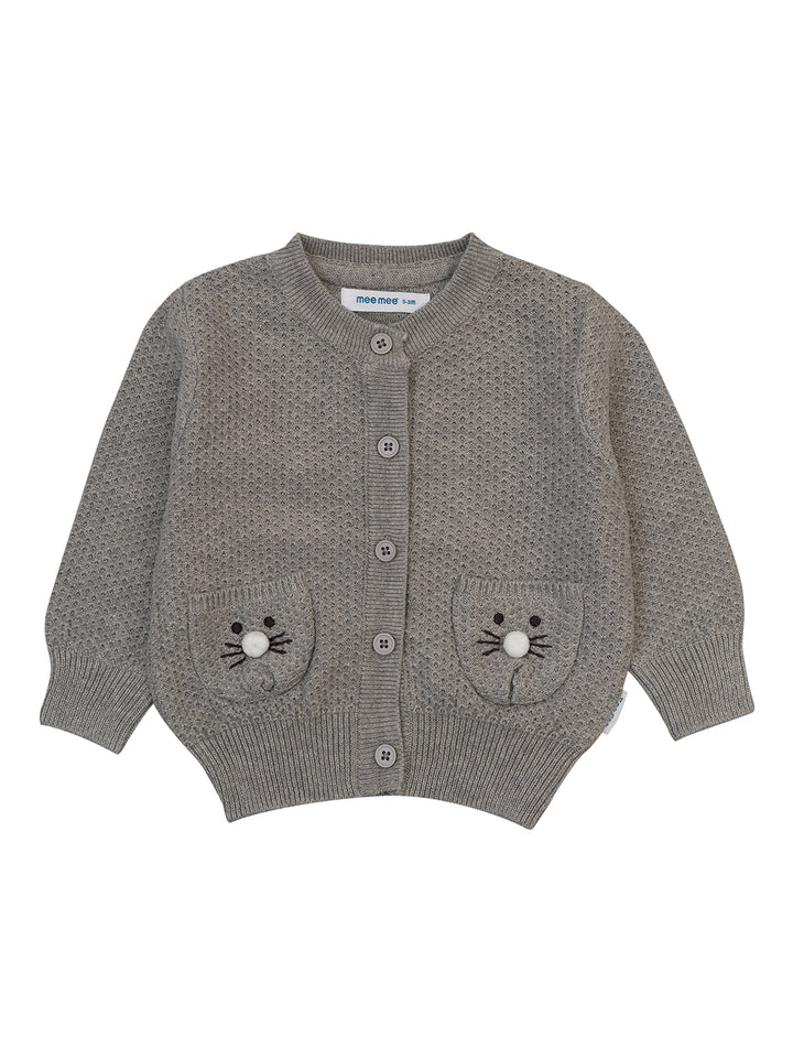 Keep your little one warm and adorable in the Mee Mee Light Grey Cotton Sweater Set. Crafted from soft, breathable cotton, this cozy winter outfit features a button-down sweater with cute animal-face pockets and matching bottoms. Ideal for everyday wear during chilly weather, it blends comfort with playful charm for your baby’s wardrobe.