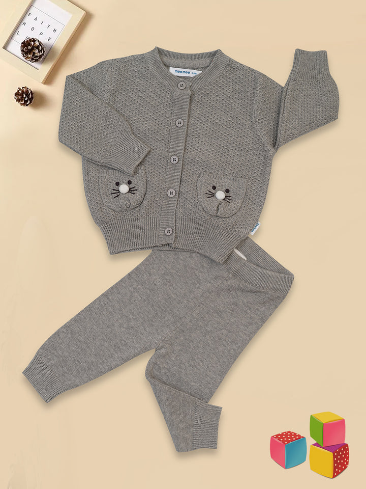 Mee Mee Light Grey Cotton Sweater Set – Soft & Stylish Winter Outfit for Babies