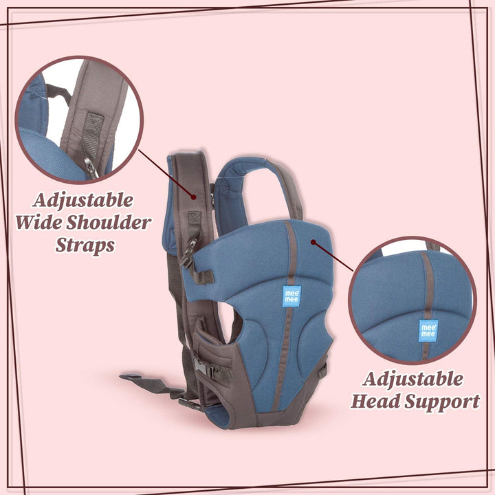 Now going out is a lot more fun! Take your baby out of the house without any worries in this convenient Mee Mee's Baby Carrier. Your baby can explore the surroundings safely while feeling emotionally secure with you close by. Made of premium quality breathable fabric, this carrier grows with your baby; adjustable height and adjustable seat make sure your baby is most comfortable. Close carrying has been scienti cally proven to help your baby grow up to be secure, intelligent, family oriented and happy. So whether it is to do small chores or to meet friends, you can take your baby out with you every time.