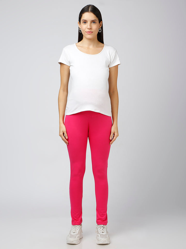 Mee Mee Maternity Leggings – Fuchsia, Soft Single Jersey, Supportive & Stretchable Fit