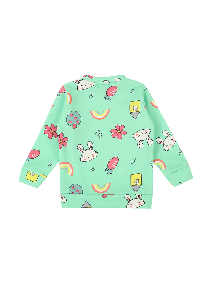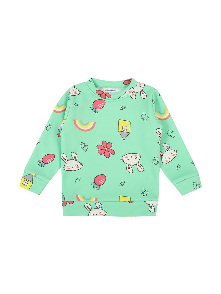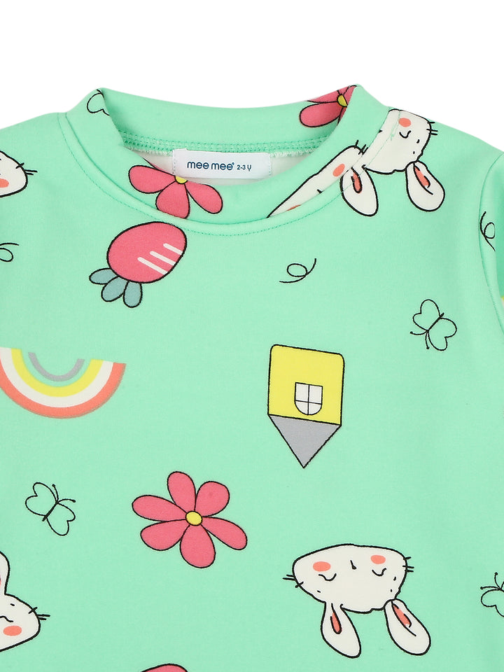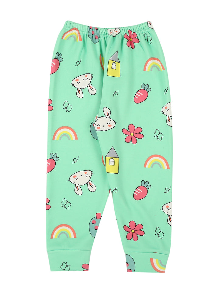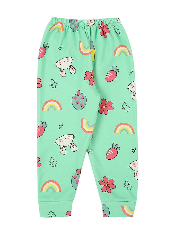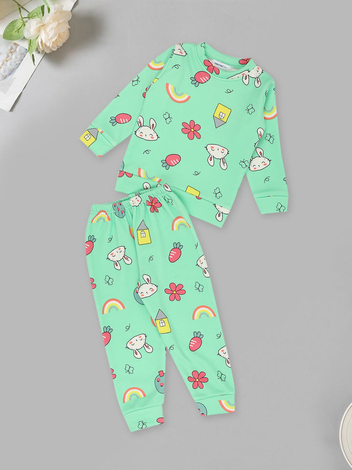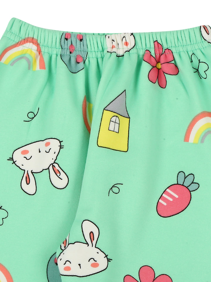Mee Mee Mint Cotton Nightsuit for Kids | Bunny & Rainbow Print for Cozy Sleep