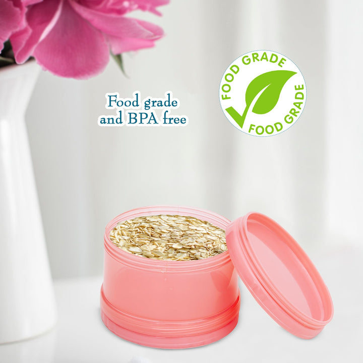Compact and light weight designed milk powder container for baby is a great product to contain foods while travelling. The size of the box is small and it can be easily put into a mommy bag, so you never have to worry about your baby being hungry when you go out to play. Milk powder dispenser is made of high-quality BPA-free PP material which makes the box durable. The box comes with 3 compartments that can be used as a single box or as a combination of multiple boxes, can also be taken separately.